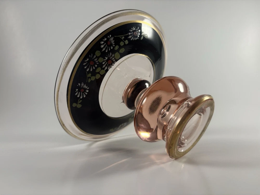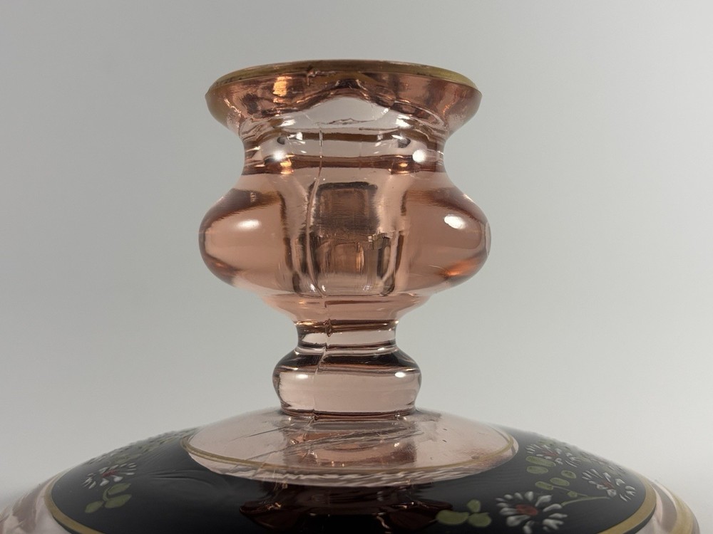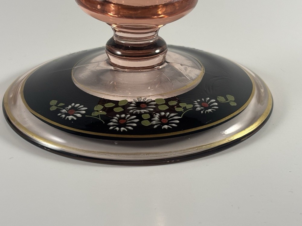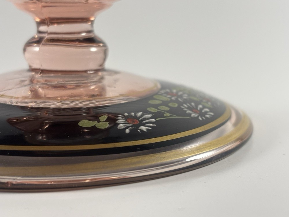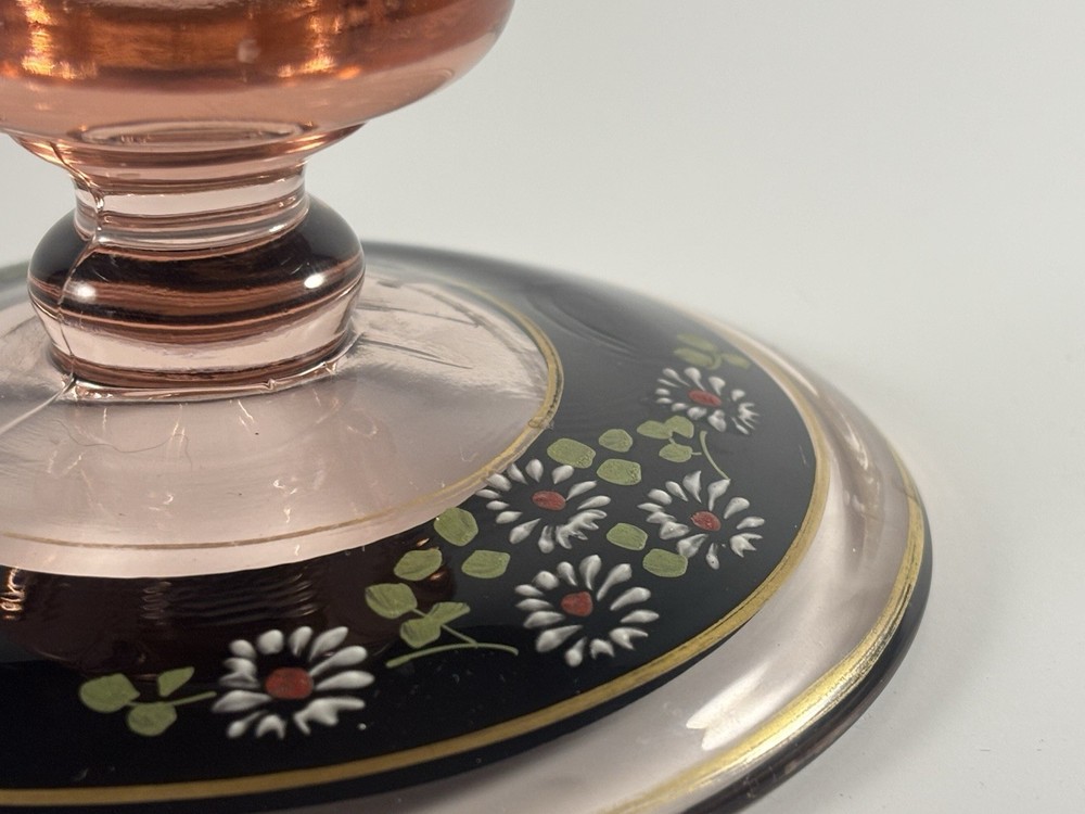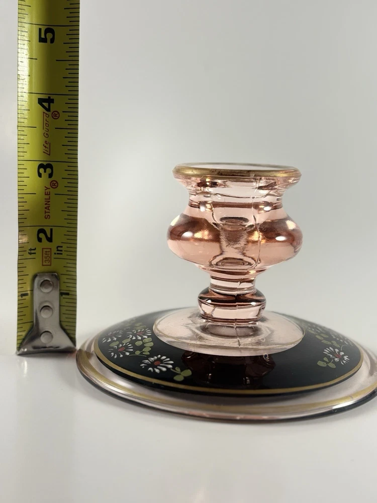 ANTIQUE PINK HAND PAINTED DEPRESSION GLASS CANDLE HOLDER