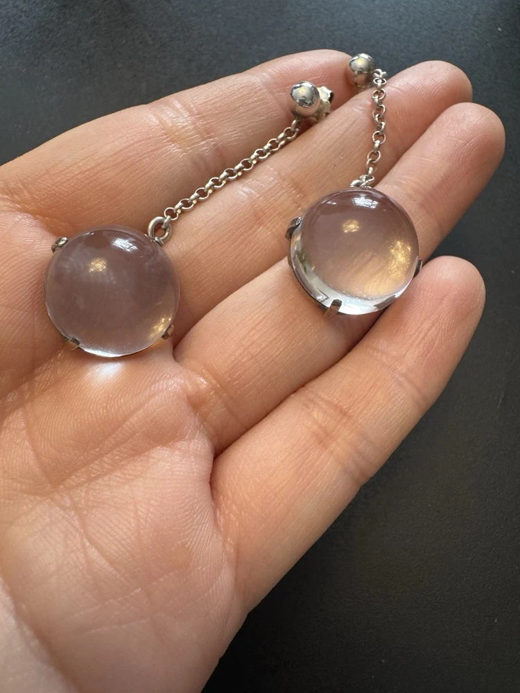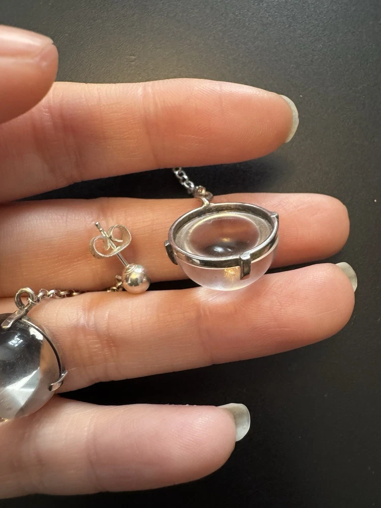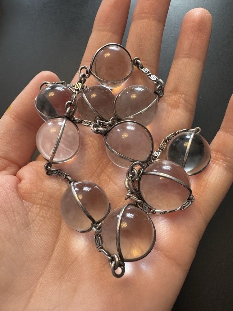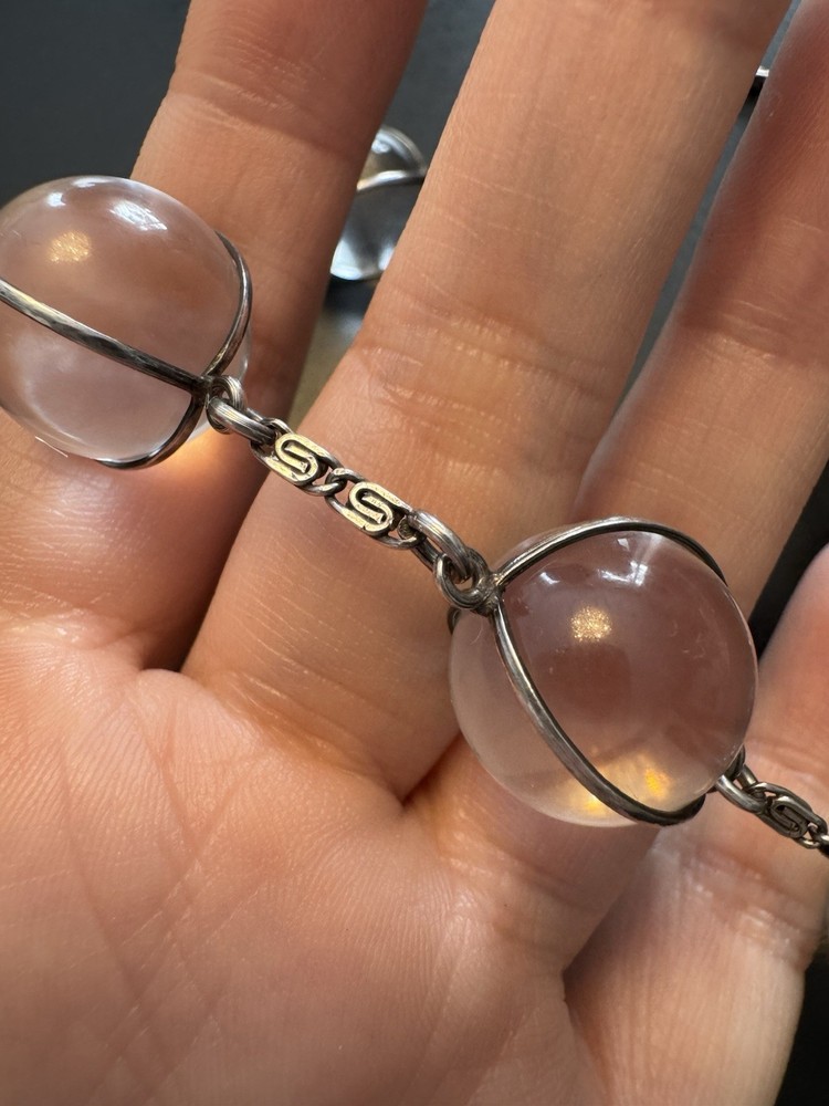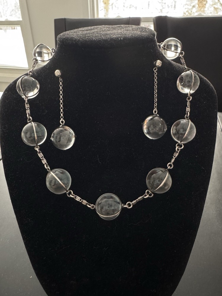 ANTIQUE POOLS OF LIGHT, ROCK CRYSTAL,10 ORB SILVER 42cm NECKLACE with earrings