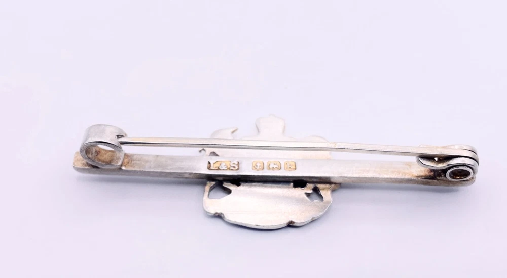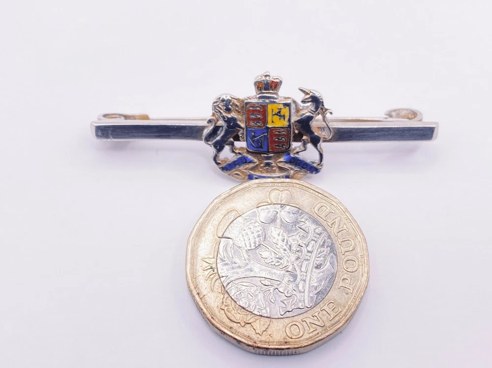 ANTIQUE SILVER LEVI & SALAMAN 1909 EDWARD VII ROYAL STANDARD BAR PIN BADGE. THE BAR PIN BADGE IS IN VERY GOOD CONDITION WITH NO VISIBLE LOSS TO ENAMEL. THE SIZE OF THE BAR PIN IS LENGTH OF 46 MM; THE ROYAL STANDARD SIZE IS 15 MM X 17 MM. THE WEIGHT IS 4.5 GRAMS. CUL1B3