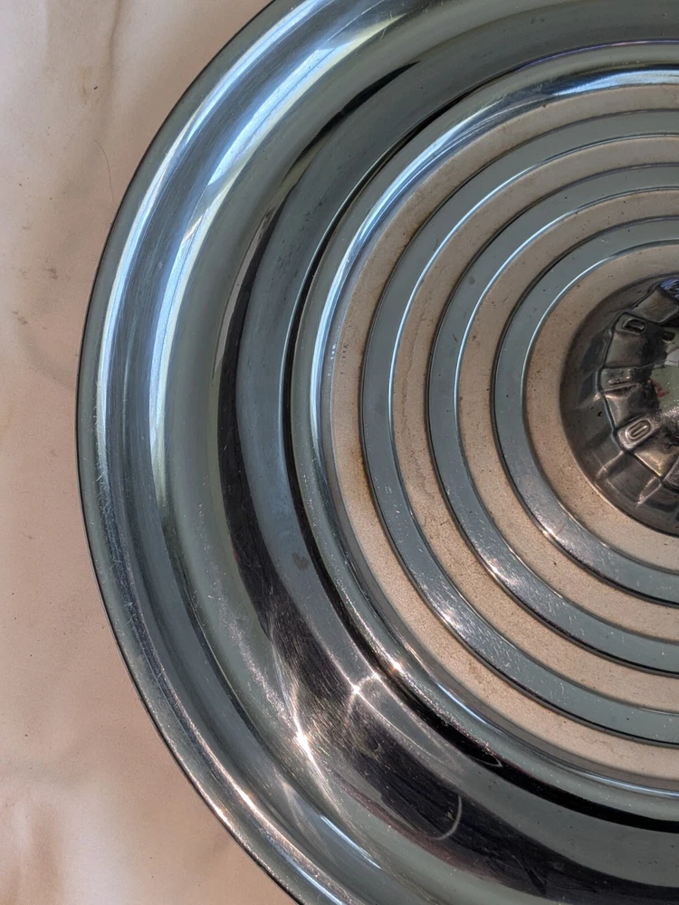 The photos show everything. As far as I know, this is for a 1956 model Oldsmobile. Possibly Delta 88 or 98? I do not know. Not sure which model, possibly multiple models. Possibly 1956 and / or other years. All I know for sure is that it is for Oldsmobile. Be sure to look at the beautiful cone in the center, and also look at all the other photos and be sure this is what you need for your vehicle. There are no returns . The diameter of the mounting rim on the back side measures approximately 14.5 inches across. This is a very nice hubcap, likely daily driver quality, maybe not show quality. But maybe it could be, I do not know what the standards are for show quality. I see no dents and no dings whatsoever. Possibly I'm missing one, but I honestly don't think so. It is not out of round. It may need very minor cleaning or polishing. The backside is somewhat dirty, but obviously that will not be seen once this hubcap is mounted on your vehicle. Please use the zoom feature on each photo and ask any questions you may have. THIS WILL SHIP USING UPS, FEDEX OR USPS, WHICHEVER I SELECT AT TIME OF SHIPPING.