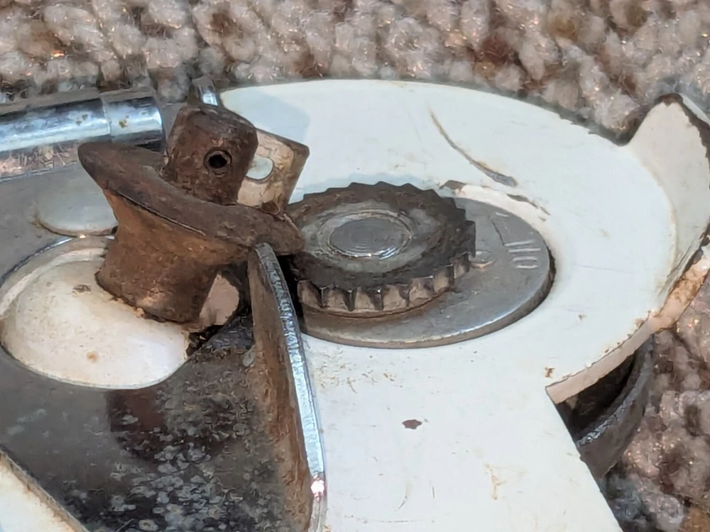 The photos show everything. I am not sure of the age, definitely old, vintage, possibly antique. I am guessing from the 1950s, but I do not know, it could be earlier. It comes exactly as you see it, in the condition. Show. Turns all the way around, as intended. Not try to open a can with it, so I can only assume that it works properly, I cannot guarantee it. You get exactly what you see in the photos. The photos are the description and they show the condition. Please use the zoom feature and ask any questions you may have. THIS WILL SHIP USING UPS, FEDEX OR USPS, WHICHEVER I SELECT AT TIME OF SHIPPING.