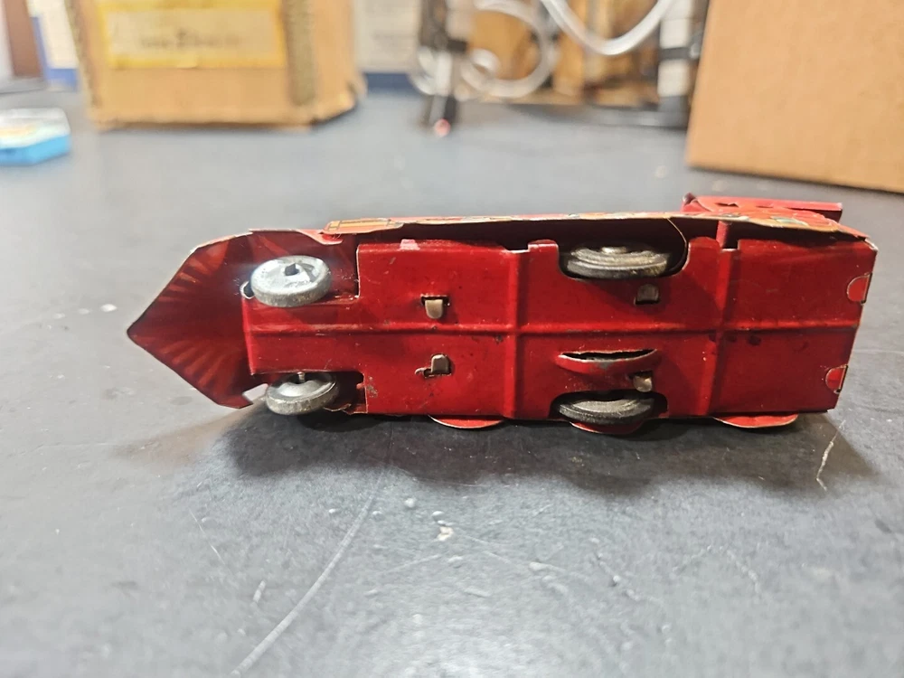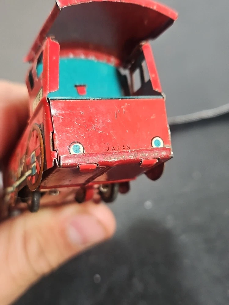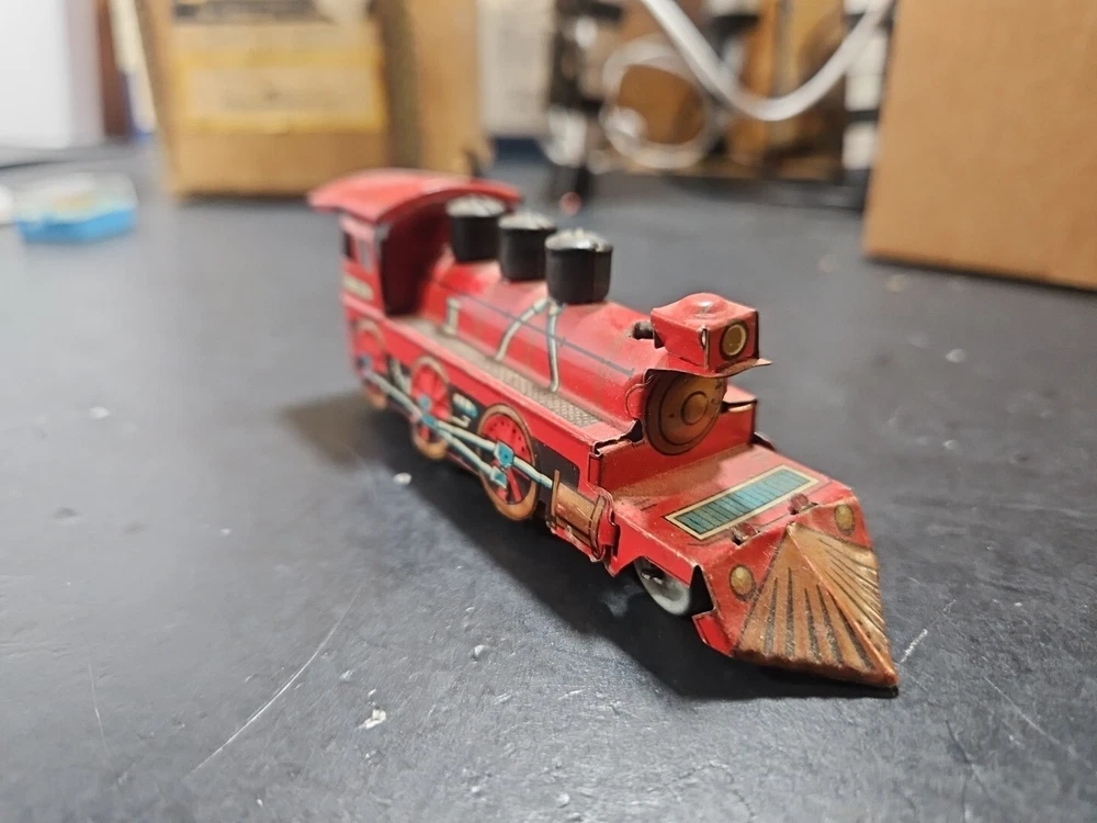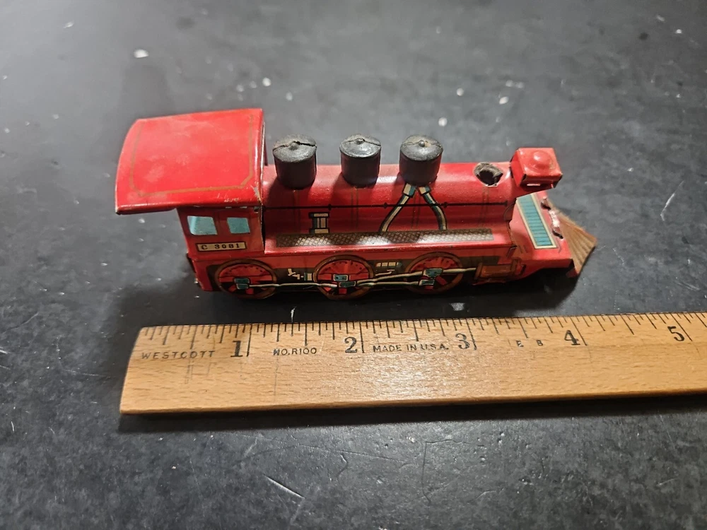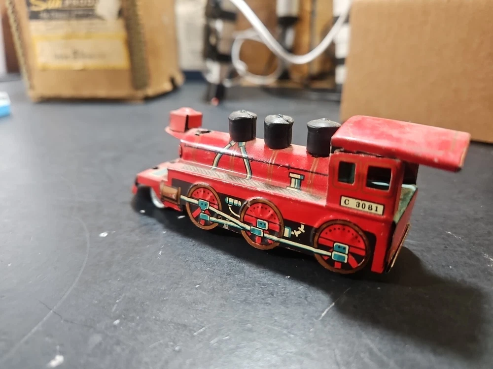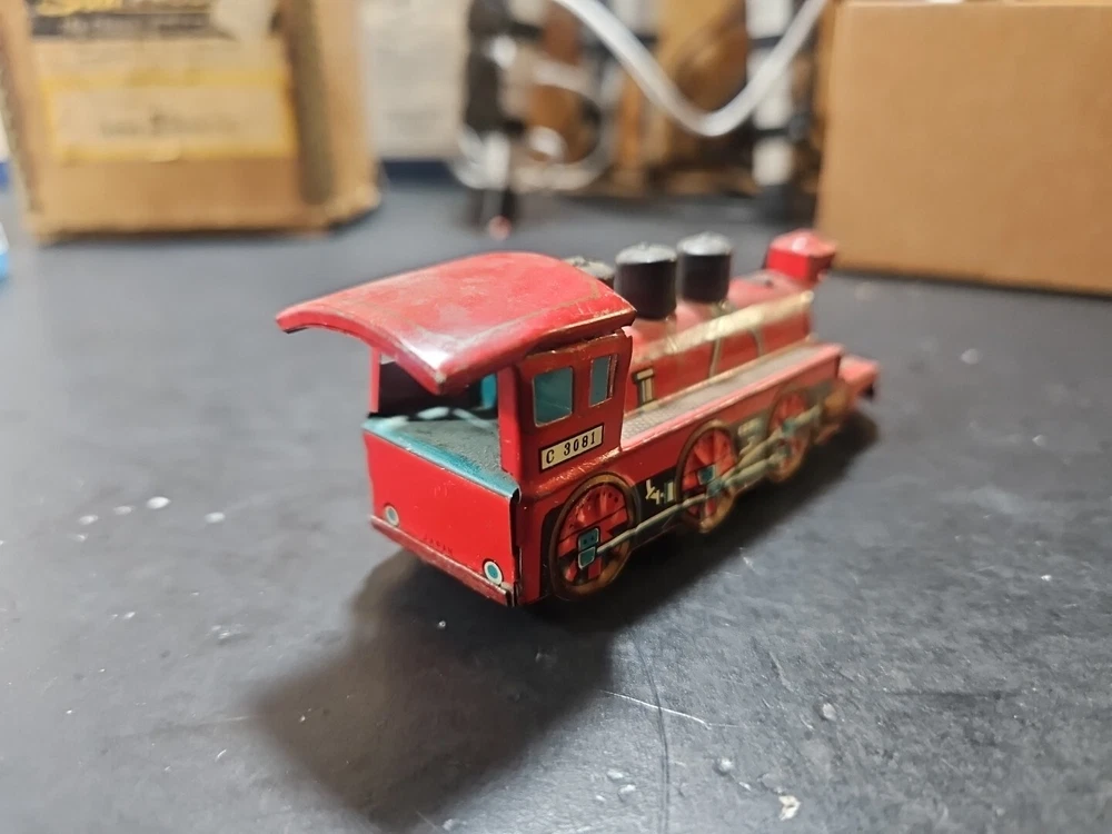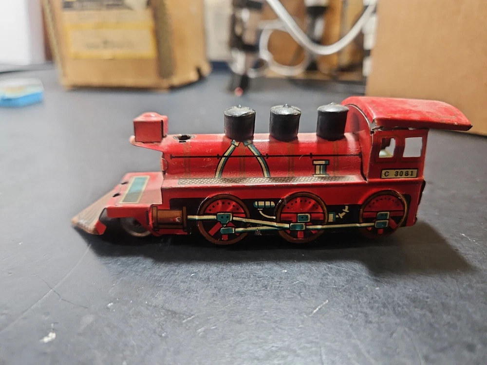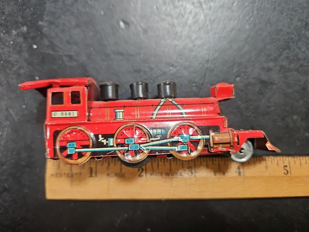ANTIQUE Vintage tin toy locomotive train red C 3081 GUC JAPAN Good used condition vintage tin toy train. Sold as is. Markings from age and use. See pictures. Product will be shipped timely and packaged with care. Offers are encouraged. Please feel free to reach out with questions. Please see pictures. Thank you. This antique vintage tin toy locomotive train is a true collector's item. Made of high-quality tin material, this vintage toy is the perfect addition to any collection. With its bright red color and intricate details, this locomotive train is sure to bring a nostalgic touch to any room. As a vintage piece, this toy train has a unique charm and character that cannot be replicated. Whether you're a toy collector or just looking for a fun decorative piece, this antique tin toy is a must-have. So add a piece of history to your collection with this vintage toy locomotive train.