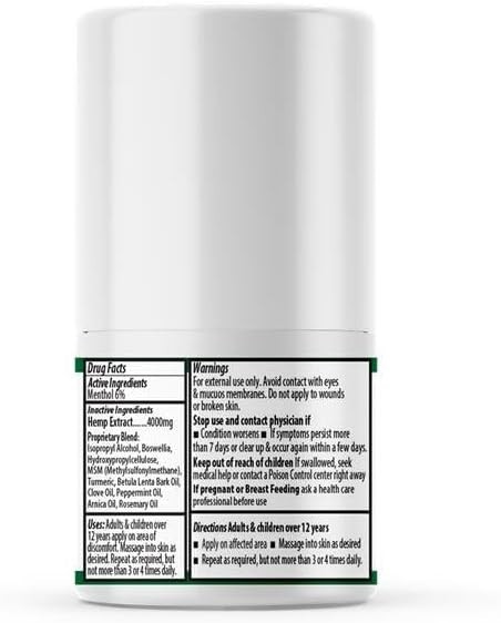 #1 Recommended Premium Hemp Roll-ON 4000mg ( Maximum Strength Formula ) + Arnica + MSM + Turmeric ✔ Fast Acting, Long Lasting, Non-Greasy Formula. Target & Focus on the Deep Pain and Soreness Relief ✔ A Powerful Hemp Roll-On for, Pain Relief, Muscles, Neck, Shoulder, Wrists, Backaches, Joint Pain. ✔ Effectively Anti-Inflammation for Nerve, Hip, Joint, Elbow, Carpal Tunnel, Foot, Ankle Pain Relief ✔ Made in The USA, FDA inspected, GMP Certified Facility, Quality Control Certified, Lab Verified.