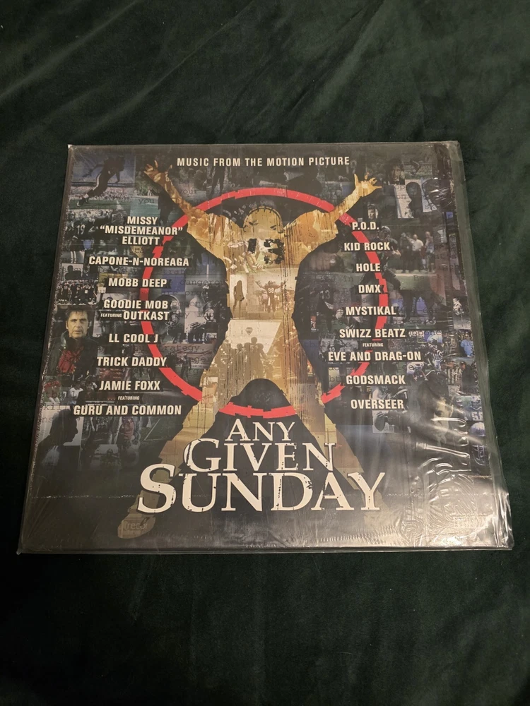 gtin13:Does not applySpeed:33 RPMEra:2000sRelease Title:any given sundayCase Type:Cardboard SleeveMaterial:VinylStyle:2000s, Film Score/Soundtrack, Hip-HopFormat:RecordColor:BlackEdition:First Pressing, PromoRelease Year:2000Type:Double LPArtist:VariousNumber of Audio Channels:StereoRecord Label:Warner Bros.Genre:Soundtracks & MusicalsUPC:Does not applyRecord Size:12"Country/Region of Manufacture:United States