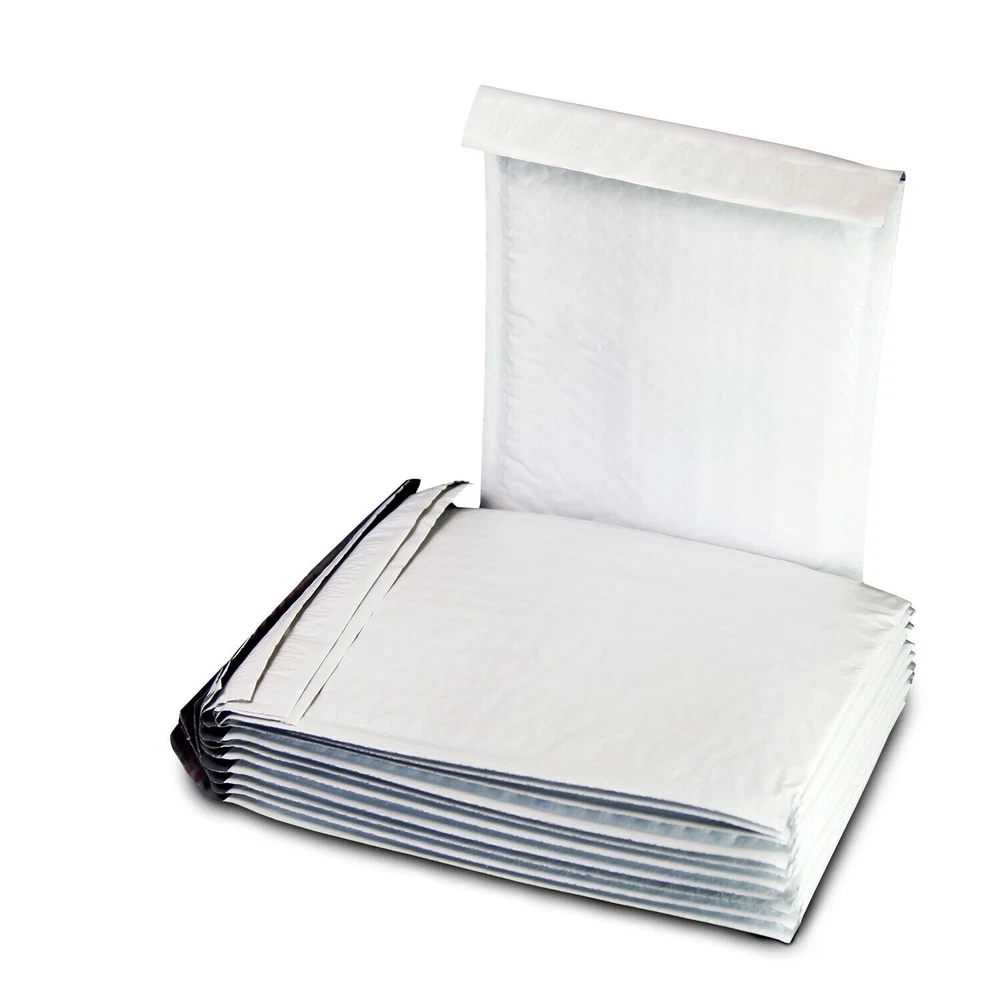 Self-sealing, adhesive and easy to be peeled off Keeps your contents secure and tamper-proof Extremely durable yet lightweight. Strong seams with fins on two sides and a seamless bottom provides maximum protection. Surface easily accepts ink, stamps, and labels. Approved by USPS, FedEx, UPS, and DHL. Available Sizes: #0000 4 x 6 Inch (Usable Space 4 x 5) #000 4 x 8 Inch ( Usable Space 4 x 7) #00 5 x 10 Inch ( Usable Space 5 x 9) #0 6 x 10 Inch ( Usable Space 6 x 9) #0XL 6.5 x 10 Inch ( Usable Space 6.5 x 9) #1 7.25 x 12 Inch ( Usable Space 7.25 x 11) #2 8.5 x 12 Inch ( Usable Space 8.5 x 11) #3 8.5 x 14.5 Inch ( Usable Space 8.5 x 13.5) #4 9.5 x 14.5 Inch ( Usable Space 9.5 x 13.5) #5 10.5 x 16 Inch ( Usable Space 10.5 x 15) #6 12.5 x 19 Inch ( Usable Space 12.5 x 18) #7 14.25 x 20 Inch ( Usable Space 14.25 x 19)
