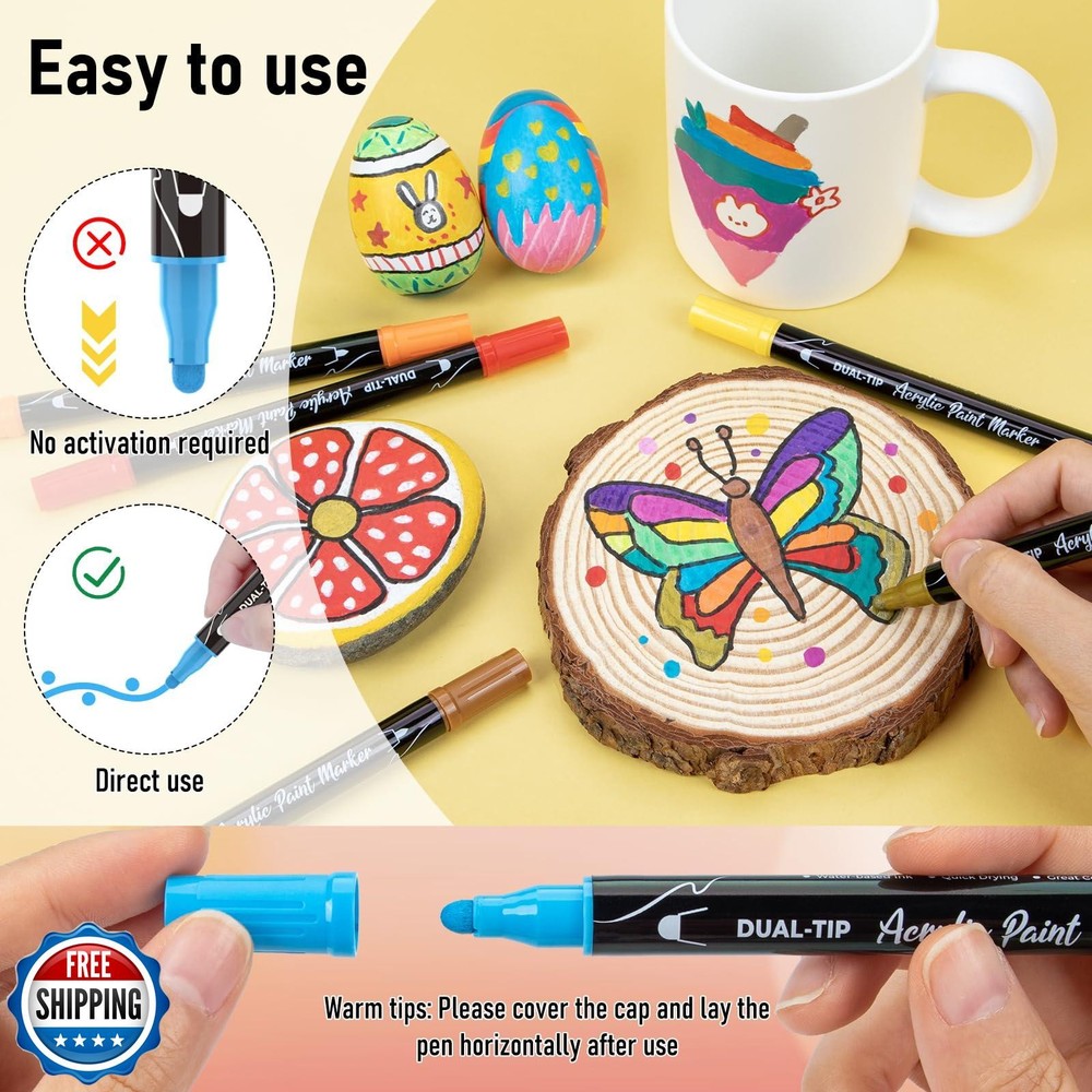 ANYUKE 50 Colors Acrylic Paint Pens Markers, Dual Tip Acrylic Paint Markers for Wood,Rock Painting, Canvas, Stone, Glass, Acrylic Dot Markers Pen For DIY Crafts Making Art Supplies Features Dual Tip Acrylic Paint Pens: Each acrylic marker has a 1mm fine tip and a 2-5mm round tip, allowing you to easily switch between fine lines and large fills. The fine tip is perfect for calligraphy, illustration and precise outlining, while the point tip allows you to draw different sized dots, ideal for doodling, filling in large areas and adding eye-catching decorations. Whether you're sketching, writing, designing greeting cards or decorating, this dual tip acrylic paint Pens will make your work more expressive! 50 Bright and Vibrant Colors: This paint pens for wood contains 36 colorful colors, including 40 classic colors and 10 metallic colors. The wide range of colors adds depth and variety to your work, whether you're coloring, sketching or crafting. Metallic colors bring a unique shine that adds a touch of elegance and glamour to your designs. This acrylic pen is great for paper, wood, stone, colored eggs, glass, ceramics, plastic, metal and more, perfect for all your artistic creations! Easy to Use and Suitable for Children: This acrylic marker dials the cap to start using, no need to shake and activate, very convenient to use. The water-based ink dries quickly and covers a wide area, so you can layer colors without worrying about smudging. These paint pens paint markers feature a sturdy and durable nib, water-based ink, and high coverage for smooth writing. These acrylic paint Pens meet ASTM D-4236 and EN-71 safety standards, non-toxic, perfect for children and adults Works on Any Surface: Our 50-color acrylic paint marker pens are suitable for a wide range of surfaces, including paper, stone, wood, ceramics, glass, metal, canvas, leather, tires and more. Whether you're creating Christmas decorations, Halloween pumpkins, or adding personalized touches to cards, photos and handwritten notes. Ideal art creation markers for children, students, artists and hobbyists alike! Ideal Markers for Gift: This multifunctional acrylic marker makes a great gift for artists, crafters and hobbyists of all ages. Acrylic paint markers inspire creativity whether it's for kids' birthdays, holiday celebrations like Christmas, or DIY projects for adults. The versatility and high quality of the acrylic pens make them ideal for any art project. If there is any problem with the product, you can contact us at any time, we will solve the problem for you immediately and make your shopping worry-free! Shipping Free & Fast Shipping: We offer free shipping to most of the USA with a normal delivery time of 3-7 days. However, due to the current situation, additional delivery time (up to 3 weeks) may be required for some items. Alternative Carriers: We may use alternative carriers (e.g., USPS, FedEx, UPS) to ensure your package arrives safely and on time. Due to the use of multiple carriers, we are unable to provide a tracking number automatically. Handling Time: Orders are processed and shipped within 1-2 business days of receiving cleared payment. Shipping Restrictions: Shipping to Alaska, Hawaii, Puerto Rico, Guam, and other US territories may incur shipping charges or delivery restrictions. Please contact us before ordering, or your order can be refunded/cancelled. State Restrictions: Certain items may not be shipped to California due to state regulations. Contact for Tracking Updates: If you require tracking updates or have any concerns about the delivery of your order, please feel free to contact us, and we will be happy to assist you. Return Policy 30-Day Hassle-Free Returns: If you are not completely satisfied with your purchase, you can return the item for free within 30 days of receiving it for a full refund or exchange. Easy Return Process: Contact us, and we will provide you with a prepaid return shipping label and detailed instructions. No Restocking Fee: There are no restocking fees for returns. However, the buyer is responsible for return shipping costs if the return is not due to a seller"s error. Refund Processing: Refunds will be processed within 1 business day of receiving the returned item in its original condition. Feedback Your feedback is extremely important to us. We strive to provide the best products and customer service possible. If you are satisfied with your purchase, please take a moment to leave us a positive review. If you have any concerns or issues with your order, please contact us before leaving negative feedback. We are committed to resolving any problems and ensuring your satisfaction. Contact Us If you have any questions or concerns, please feel free to reach out to our customer support team. You can contact us through the eBay messaging system. We are available Monday to Friday, 9:00 am to 5:00 pm EST, and we will do our best to respond to your inquiry within 24 hours. Thank you for supporting our small family business!