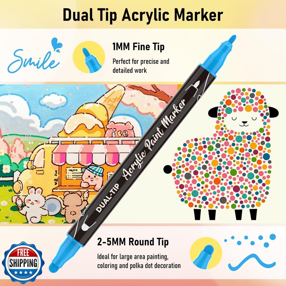 These paint pens are a game-changer for any artist or DIY enthusiast! The dual tips make them super versatile—perfect for fine details or bold fills. The colors are vibrant, they dry quickly, and they work on so many surfaces like wood, glass, and canvas. No smudging or fading, just smooth, rich coverage every time. Great value for 50 high-quality markers!