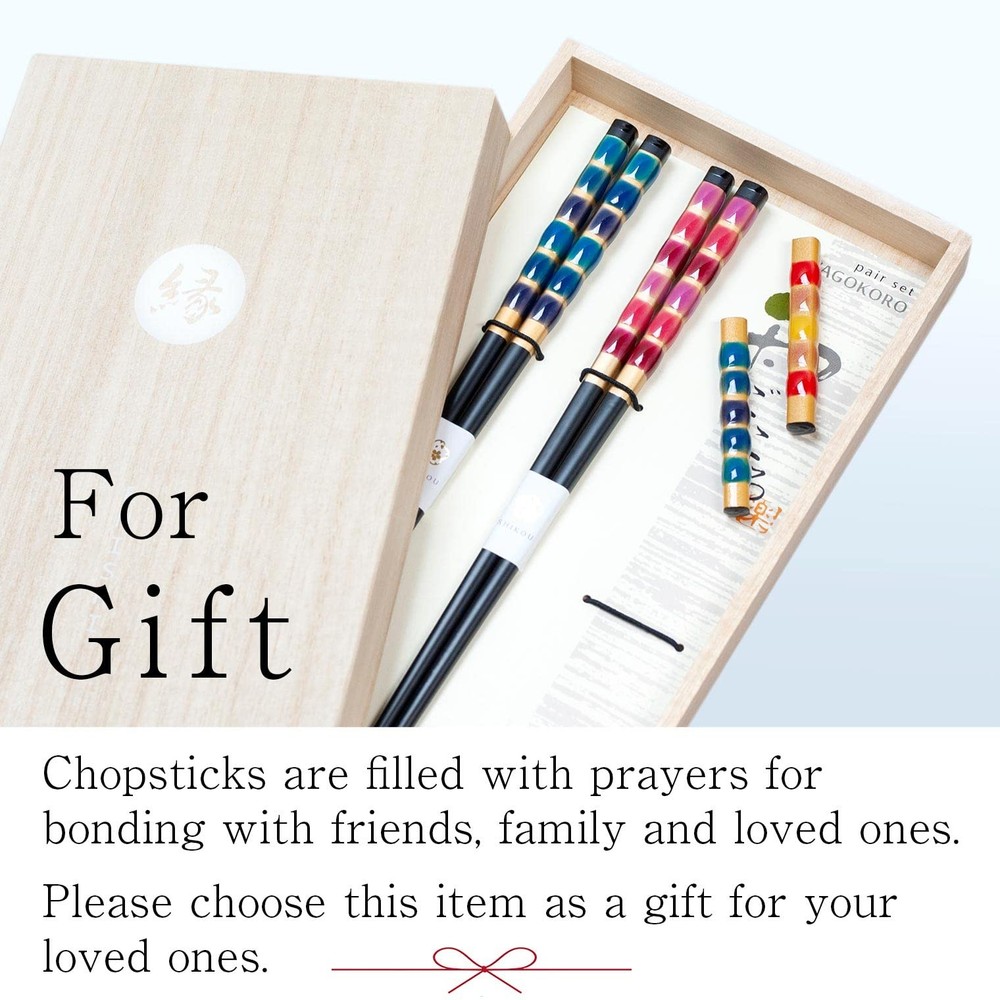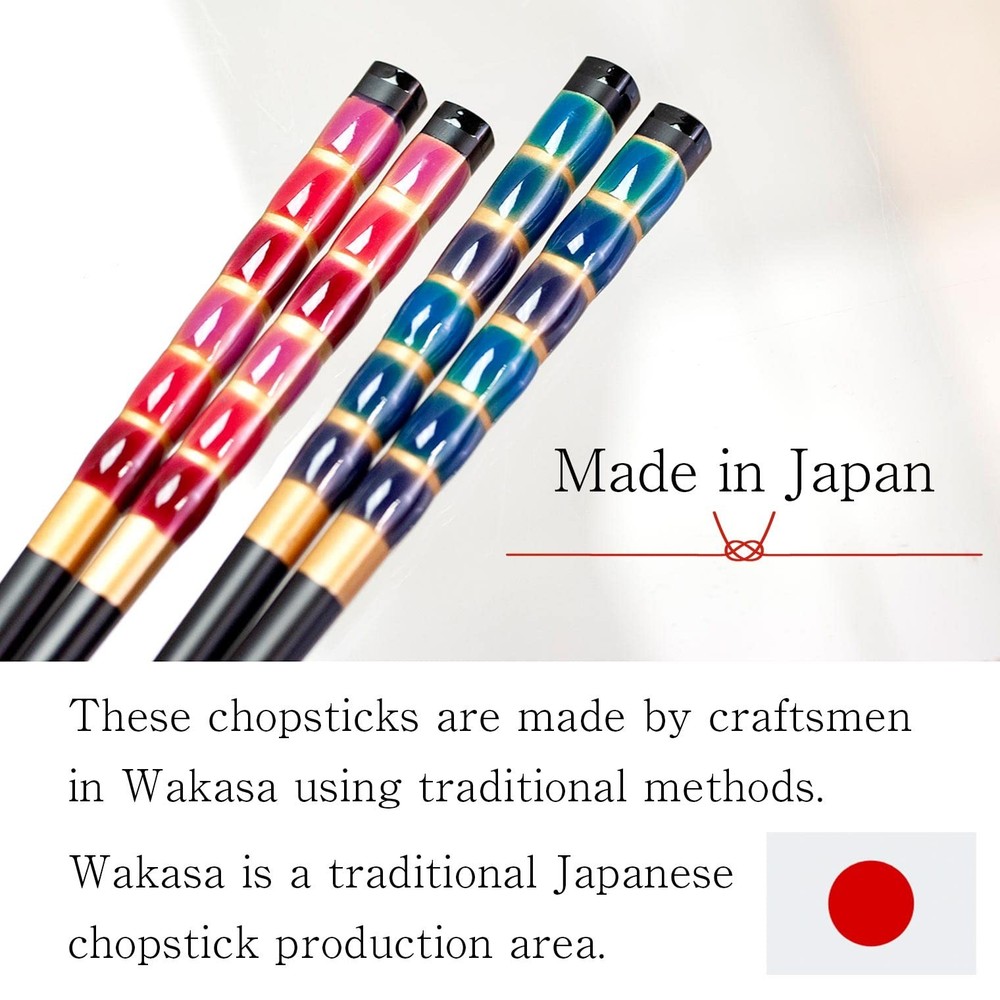 JAPAN'S FINEST CHOPSTICKS - Chopsticks made in the Wakasa Bay area in Japan are considered the finest. They are decorated with natural materials and lackered by hand. COATED WITH PREMIUM URUSHI LACKER - Japanese lacker has a 9,000 year history and has been used to protect and decorate objects. It gives objects a glossy finish and an elegant look. DISHWASHER-SAFE - Made of natural wood, lackered with Urushi. Free of BPA, PVC, or phthalates, environmentally friendly. EASY TO USE - 9" is a standard length for anyone. Japanese chopsticks are shorter and tapered at the end, making it easy to pick up any food- sushi, sashimi, tempura, udon, ramen, and more! PERFECT GIFT - These elegant and high quality chopsticks will come in a beautifully designed wooden box. Perfect as a gift or for everyday use.