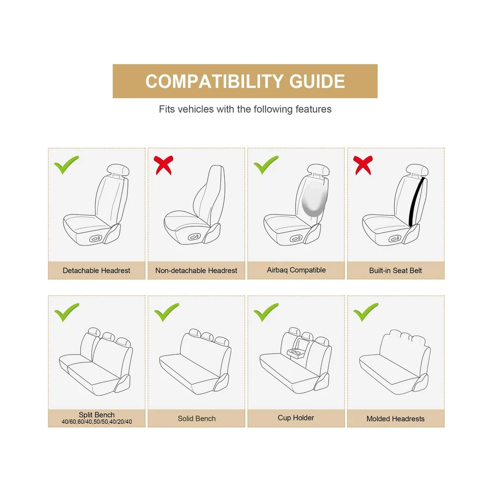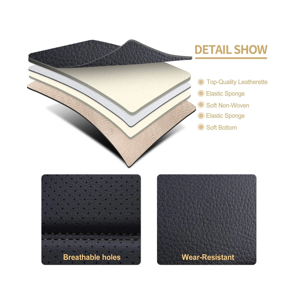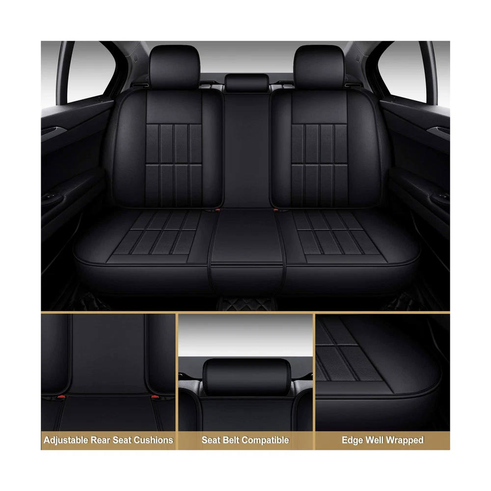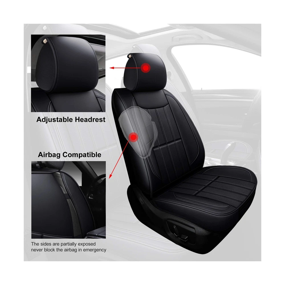 AOOG Leather/ Leatherette Automotive Seat Covers for Cars SUV Pick-up Truck, Universal Non-Slip Vehicle Cushion Cover Waterproof Protectors Interior Accessories, Full Set. Description Features: HIGH-QUALITY MATERIAL: High-Grade Leatherette materials Protect the original car seat from damage, Durable Wear-Resistant Waterproof Easy to Clean. Equipped with thick, premium High-Density Foam to create top resilience for maximum comfort during your drive. PROTECTS & LUXURIOUS: These are the perfect seat covers for your car. Our seat covers offer protection against spills and stains that might occur inside of your vehicle. High-quality artificial leather and excellent appearance design, also refreshing the look of your interior. STYLE DESIGN: Our universal fit seat covers with a unique visual design that is fully compatible with any built-in airbags. The anchor attached to the elastic strap can also provide firm reinforcement. EASY TO INSTALL: For your convenience, installation instructions are included in the product package, and we also provide product installation videos. Just follow the installation instructions, it usually takes 10-20 minutes to complete the installation. UNIVERSAL FIT: Our seat covers are designed to fit most vehicles, including cars, trucks, vans and SUVs. If you are not sure whether the vehicle is suitable for you, please contact us in time. Our customer service team will always online to assist you. Product Details: Fit Type: Universal Fit Brand: AOOG Color: BLACK UPC Manufacturer: AOOG Manufacturer: AOOG Brand: AOOG Item Weight: 14.02 pounds Package Dimensions: 25.5 x 21.25 x 6.5 inches Item model number: AOOG-A101 Manufacturer Part Number: AOOG-A101 Date First Available: December 22, 2020 Delivery We Do Not Ship Outside of the Continental US. Return Policy All items qualify for returns within 30 days of receipt. Buyer is responsible for return shipping on any item that is not damaged. Feedback We take our reputation seriously, we buy and sell online, so we understand the value of trust. If you are unsatisfied with your order, please contact us and we will work with you to resolve it to your satisfaction.