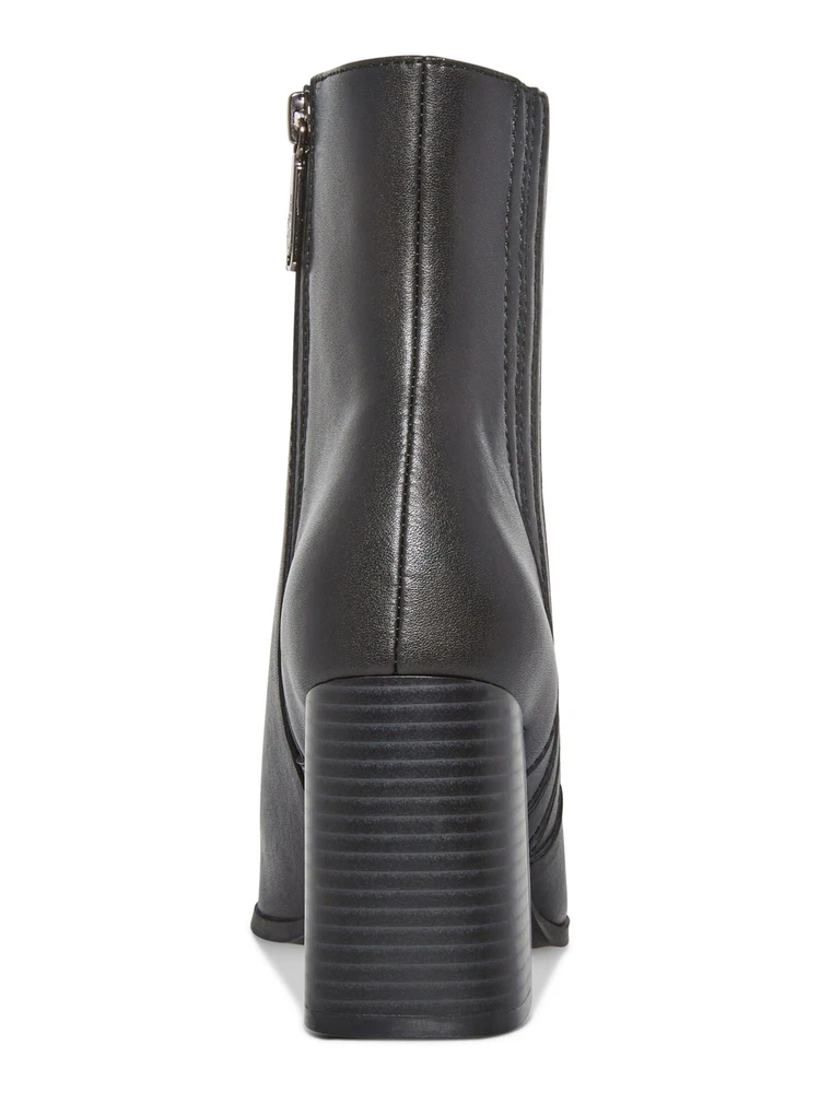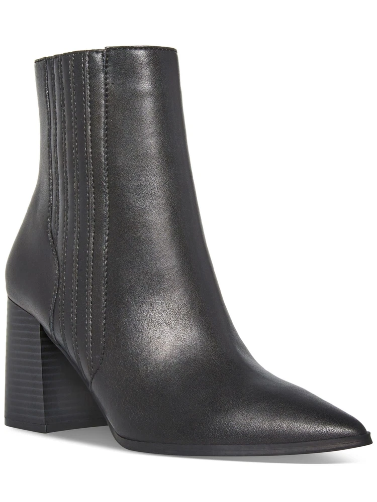 AQUA COLLEGE Womens Black Iconic Pointed Toe Stacked Heel Leather Booties 9.5 M