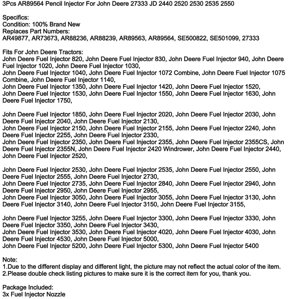 AR89564 For John Deere Pencil Injectors Tractor 27333 1520 1530 2020 2030 QTY