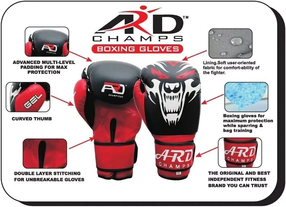 Description:- ARD CHAMPS™ Art Leather Boxing Gloves Fight Punching Bag MMA Muay Thai Sparring Kickboxing- Red This is a Pair of Brand New ARD Pro Boxing Gloves for Professionals. These Boxing Gloves are made from Art Leather with Advance Tech Layers of Gel integrated padding that allows heavy shock dispersion. Another feature that makes these gloves outstanding is the adjustable wraparound wrist strap closing system for best support. The Injected Molded Foam padding system envelopes the fist in a 2 " thick, shock-absorbing shell of protection, while the special foam composition provides a broken-in feel straight out of the box. Key Features: • Professional and Ultra Successful Quality Boxing Gloves • Ideal for all Boxing, Martial Arts, Kickboxing and Cardio Fitness Workouts. • There is a Wraparound Wrist Strap Closing System • 8oz, 10 oz., 12 oz., 14 oz., 16 oz. • 100% Quality Satisfaction. • Excellent Value for Money. Size:- 10 oz., 12 oz., 14 oz., 16 oz., Terms & Conditions:- Buyers are requested to read Company Terms & Conditions before buying product to avoid any miscommunication. When you are purchasing a product, it means you are also agreeing to Terms & Conditions of the company. Please include the following Information at the time of making your payment via bank or internet banking - Your eBay ID We accept PayPal Only We contact our buyer if any, information requires, via email, within 24 hours after cart checkout. Successful Buyers must complete the sale transaction within 7 working days from the date of receipt email notification or invoice. On Completion of the sale transaction, buyer shall get one confirmation email from us, which should be kept for any further communication. Item descriptions are provided in best of our knowledge. A sale which is once done is taken as final. Refunds are subject for consideration if the product is not at fault. Shipping and Returns ARD CHAMPS ™ We value our customer satisfaction, so we ship our products within 1 to 2 days after the payment has been done- however we ask customer to allow us to ship products within 7 days in some exceptions. Most of the consignments are delivered within 2 to 5 working days. In some cases delivery may take 10 days. In case undelivered items we request our valuable customer to contact us before leaving any negative or neutral feedback as positive feedback is very important for us. We also offer combined shipping, for combining shipping inquiry, we request our valued customer to contact us through the eBay message service. We request our customer to contact us within 14 days to return products in case of damage or faulty product. As we are always happy to solve the problems to avoid the complications. About ARD CHAMPS ™ ARD CHAMPS ™ is a company which owns and operates composite facilities for manufacturing and exporting of various Martial Arts/Sporting Wears commodities particularly Martial Arts Uniforms & Supplies. The company fully realizes the importance of maintaining the quality of its products and for the same reason it is maintaining a quality control system. Due to these commitments ARD CHAMPS, has established a prestigious position in the international market. Contact ARD CHAMPS ™ For any inquiries regarding purchase or products, please feel free to contact us through eBay message service and we will respond to you as soon as possible. All of our products listed within the eBay store of ARD. To search any particular product search with the name of product starting with ARD. 24/7 Contact Number HP# +1-407-346-1767