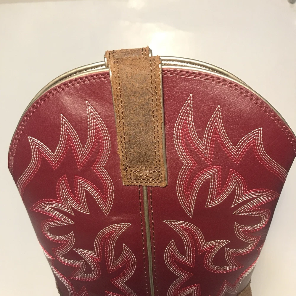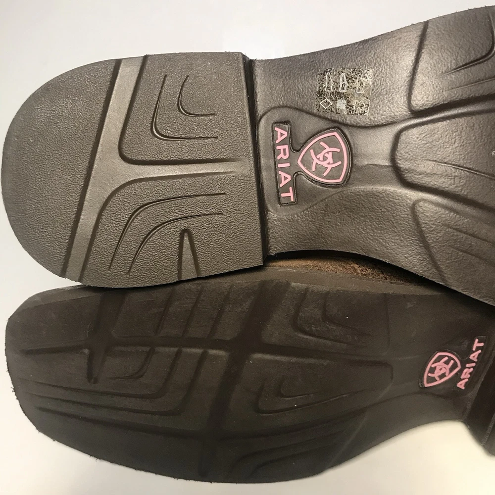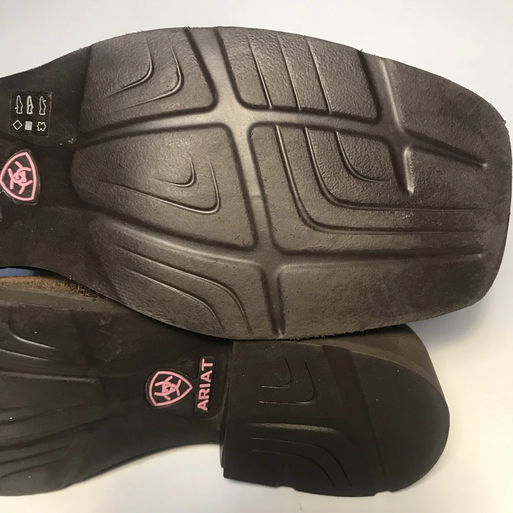 Step out in style with these beautiful Ariat Delilah boots, perfect for any cowgirl or western enthusiast. The square toe shape and pull-on design make them easy to wear, while the leather upper material ensures durability and comfort. These boots come in a stunning java/burgundy color and are available in size 8.5. The boots are designed with a Western theme and are perfect for any occasion. Whether you're going for a casual look or dressing up for a night out, these boots are sure to make a statement. The Ariat brand is known for its quality and these boots are no exception. Get your hands on the stylish and comfortable Delilah boots today! Like New !!