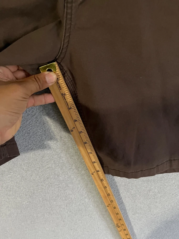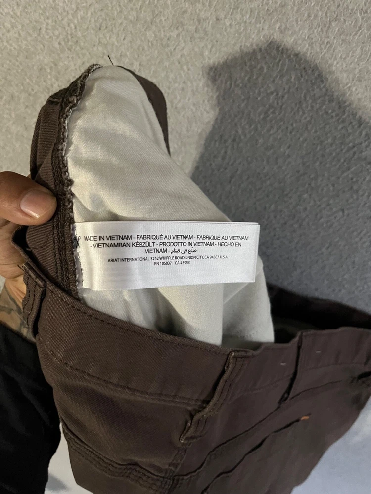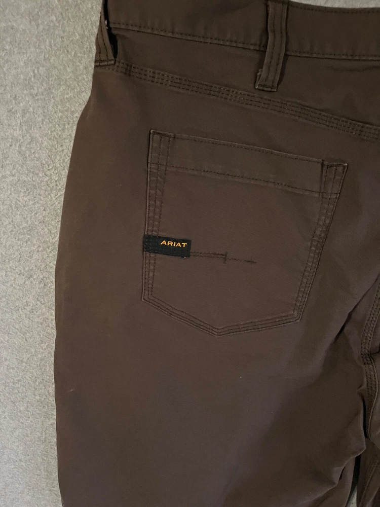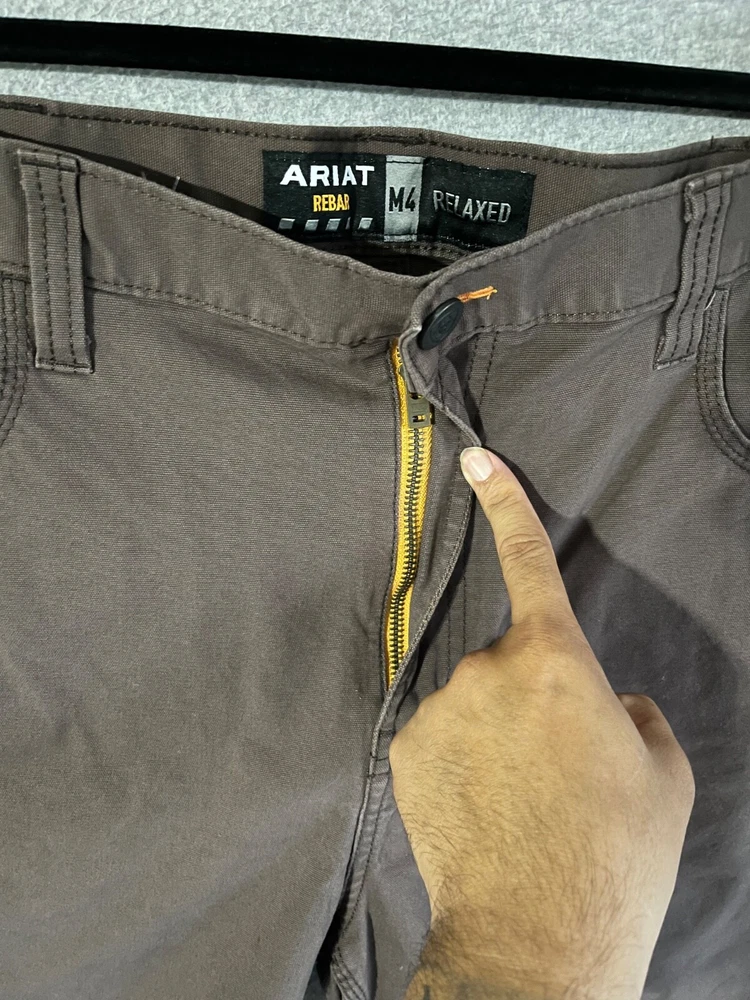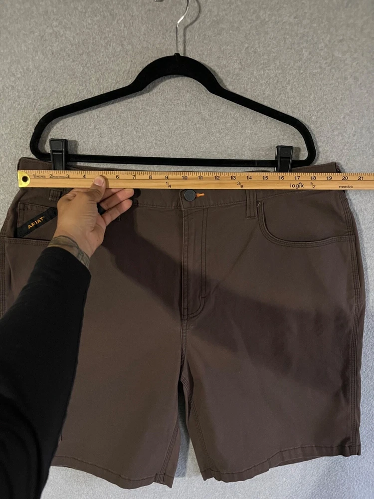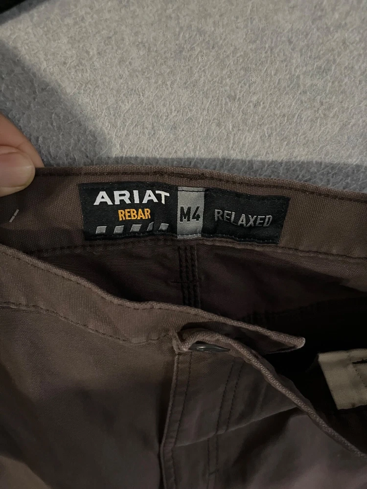 Occasion: Casual, Travel, Workwear Material: Cotton, Cotton Blend, Spandex Handmade: No Rise: High (Greater than 12 in) Fit: Relaxed Brand: Ariat Personalize: No Vintage: No Theme: American, Cowboy, Outdoor Style: Cargo Pattern: Solid Garment Care: Machine Washable Waist Size: 40 in Front Type: Flat Front Size: 40 Inseam: 9 in Pocket Type: Cargo Pocket Closure: Button Size Type: Regular Department: Men Accents: Button, Logo, Zipper Fabric Wash: Dark Fabric Type: Canvas Features: Easy Care, Pockets, Stretch Season: Fall, Spring, Summer Color: Brown