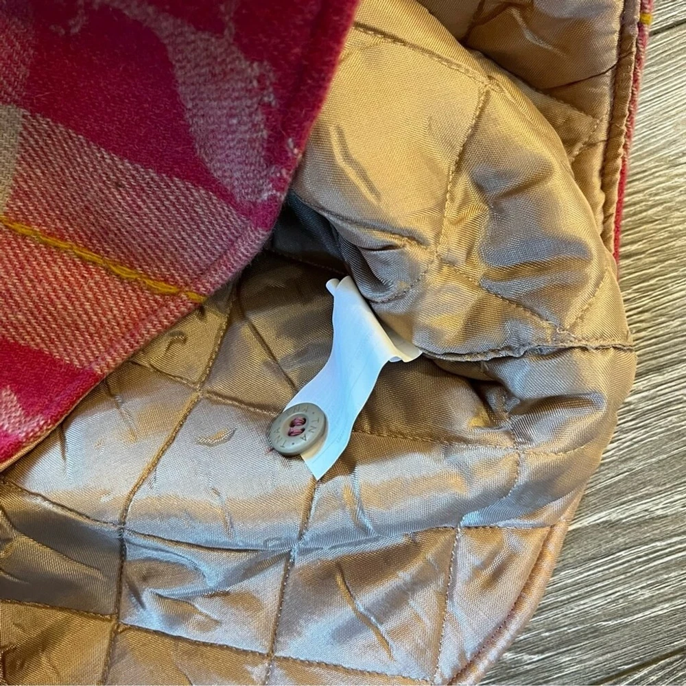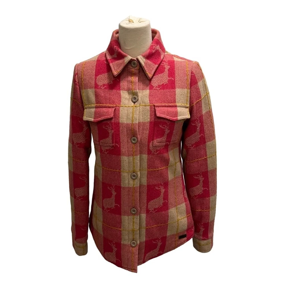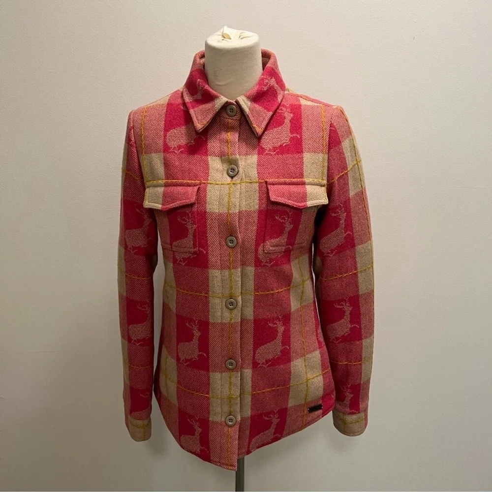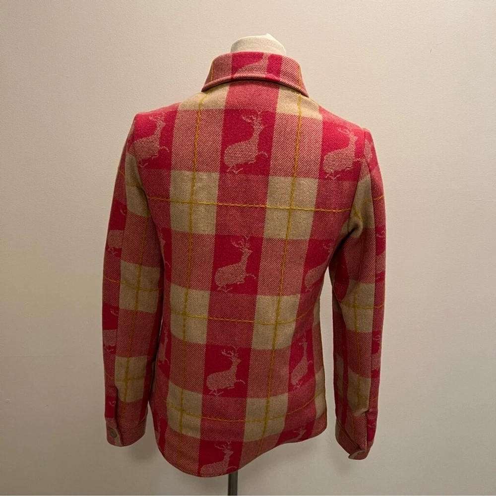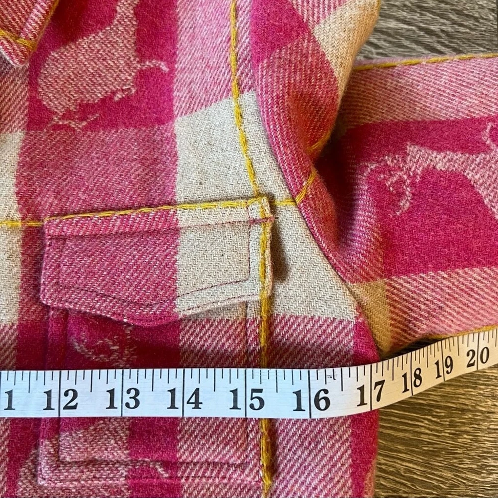 ARITZIA Pink Plaid & Reindeer Quilt Lined Wool Blend Shacket Made in Canada