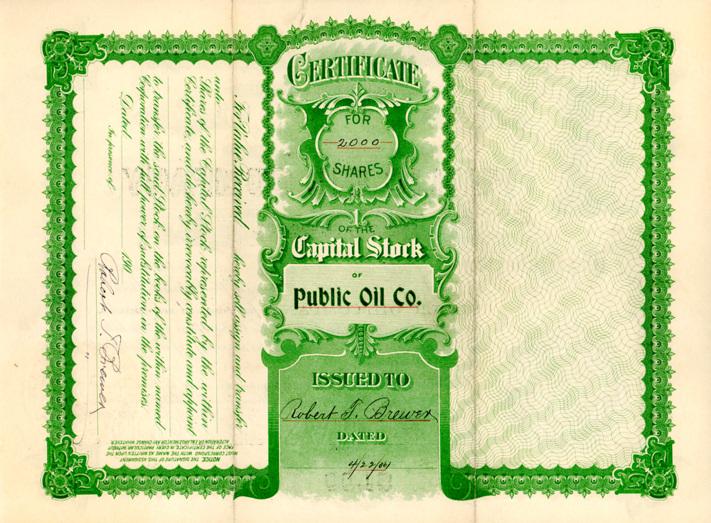 ARIZONA Territory 1904 Public Oil Company Stock Certificate