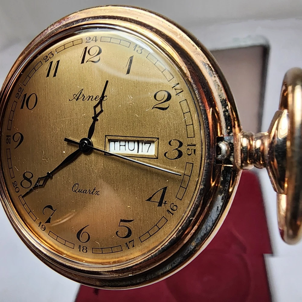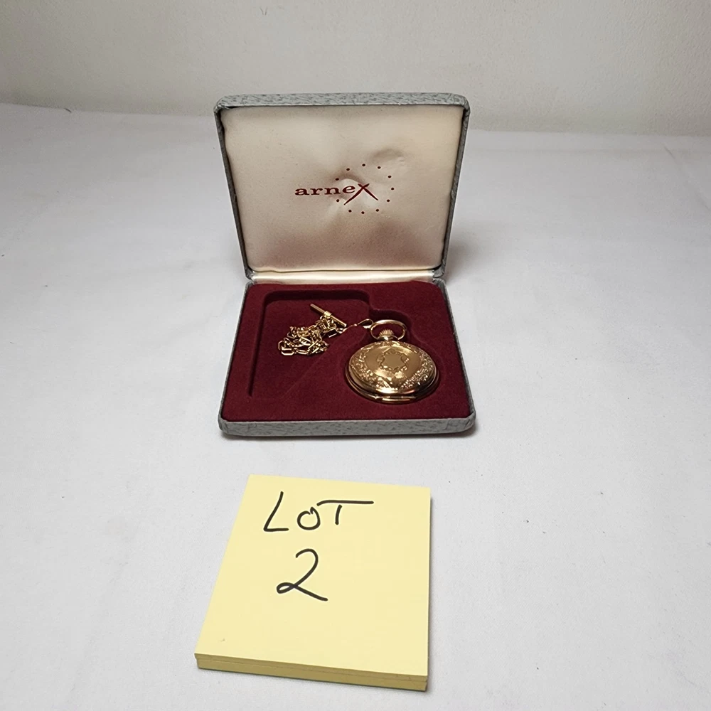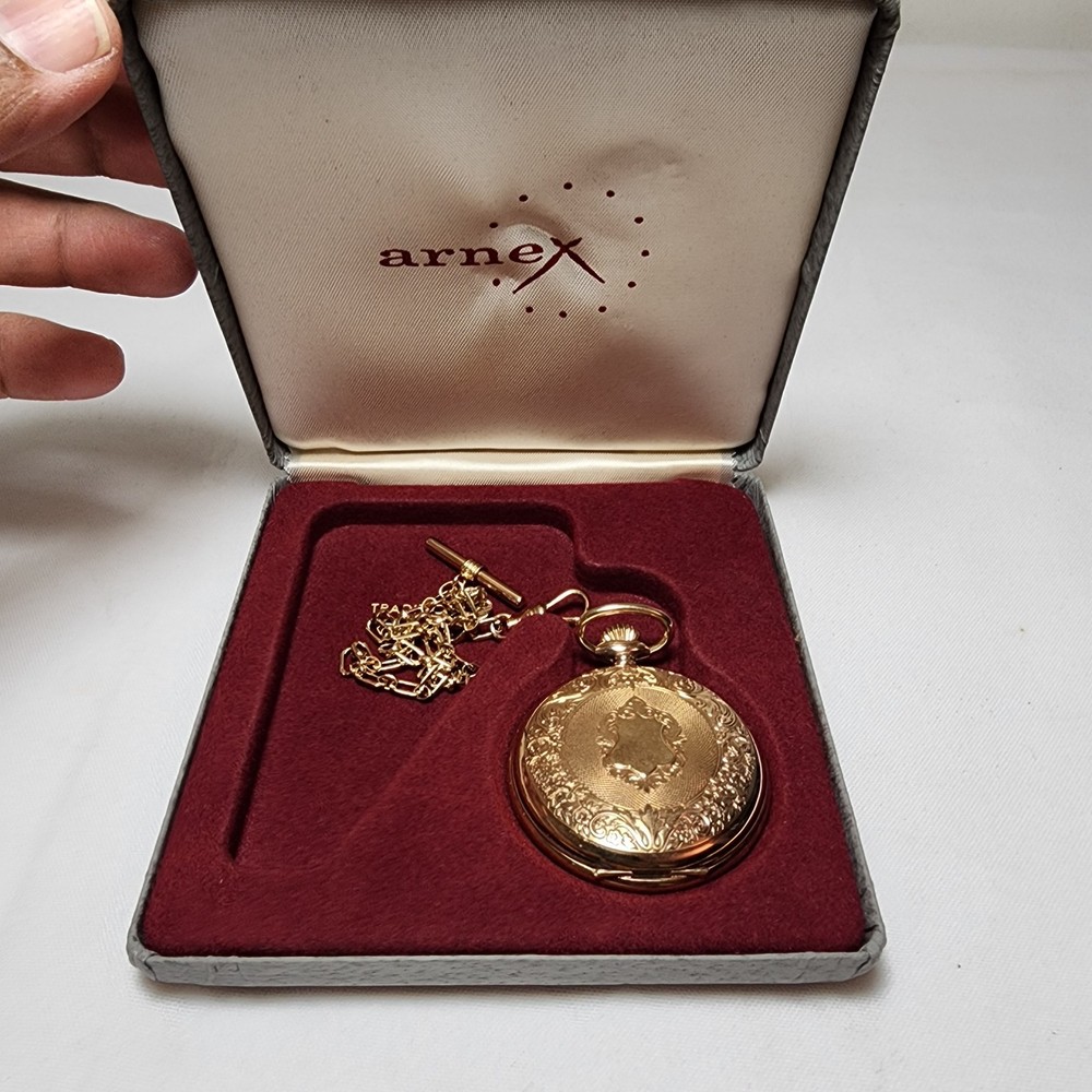 Case Color:Yellow GoldCase Material:Gold PlatedStyle:CasualSeller Notes:“Normal wear as shown in the photos. ** Untested** Needs Battery. SOLD AS IS>”Indices:Roman NumeralsDepartment:MenClosure:FlowersMovement:QuartzWith Papers:NoDisplay:AnalogFeatures:12-Hour DialBrand:ArnexCustomized:NoWith Original Box/Packaging:NoType:Pocket WatchPocket Watch Size:48MMVintage:No