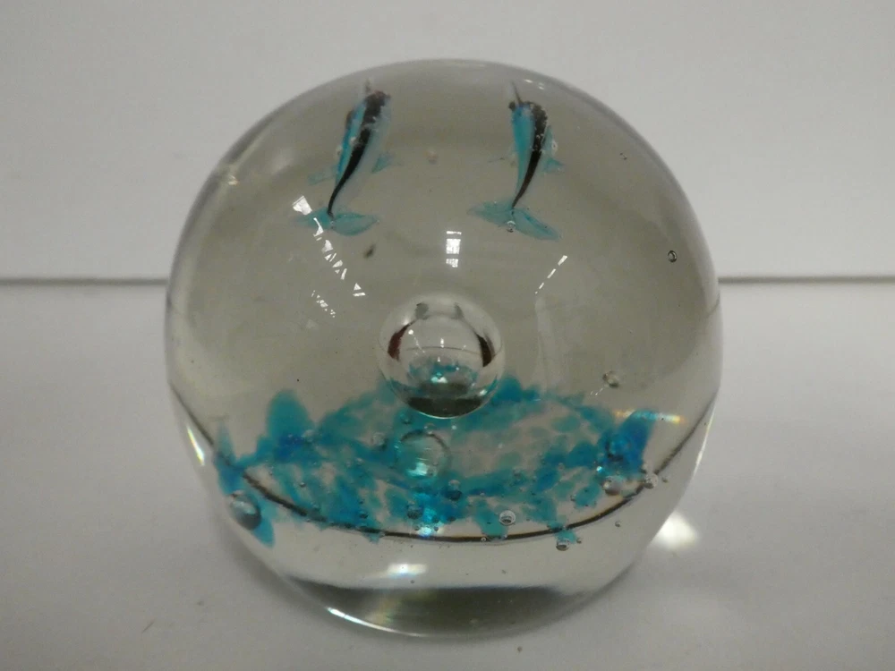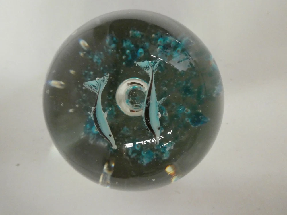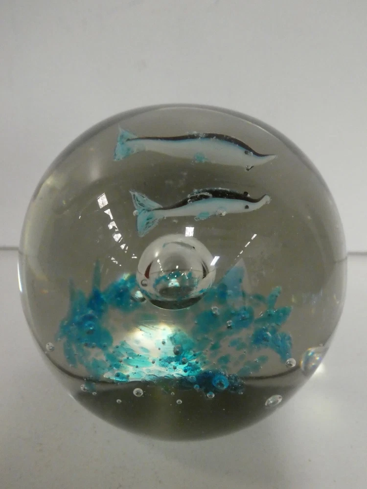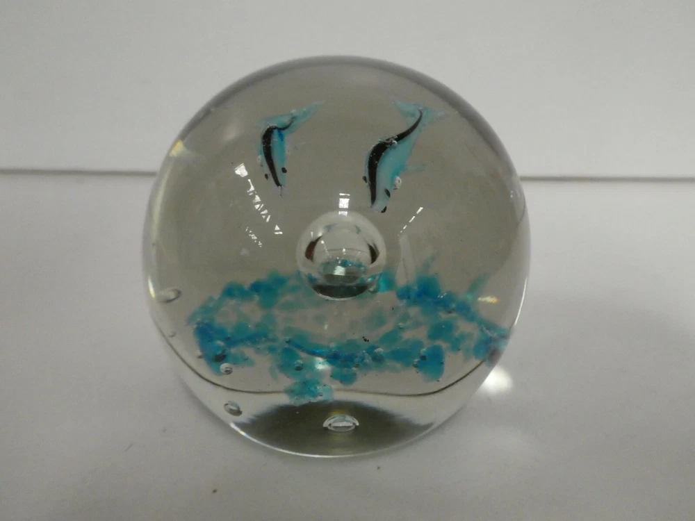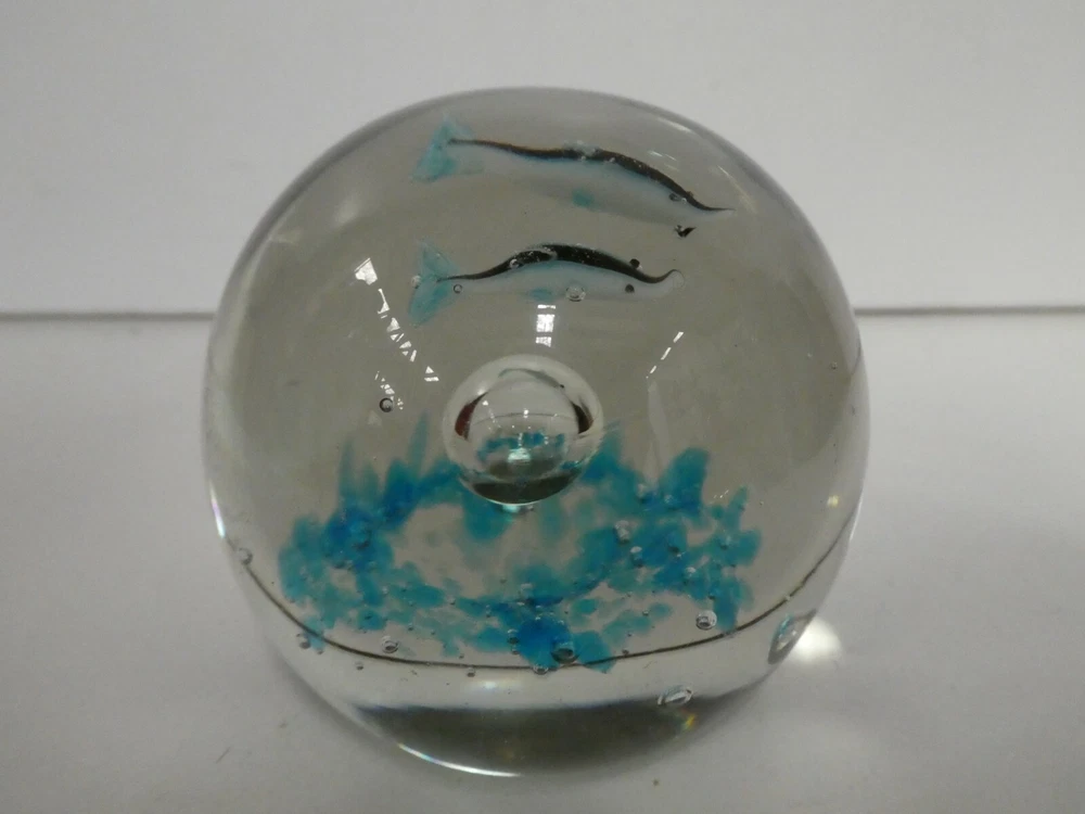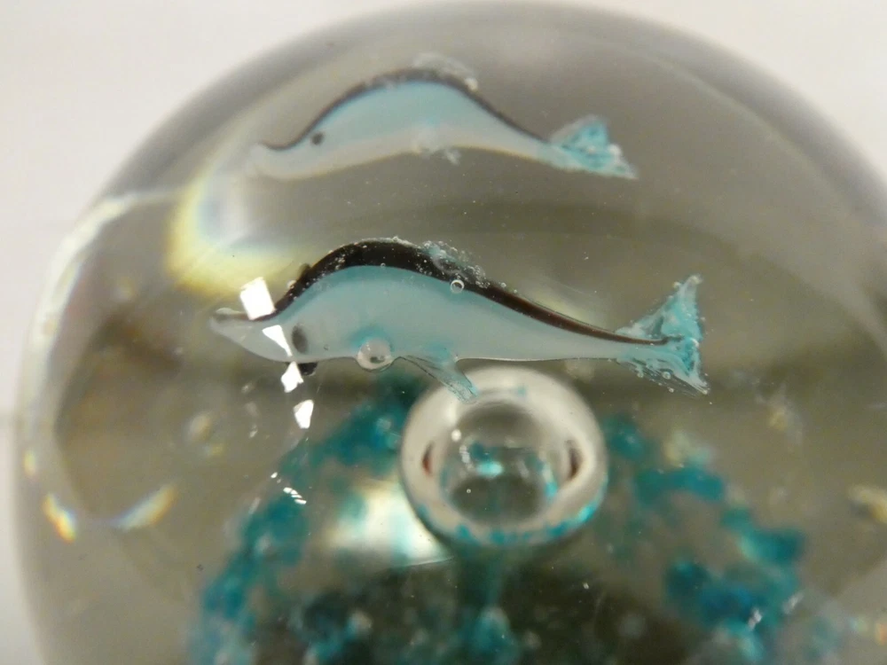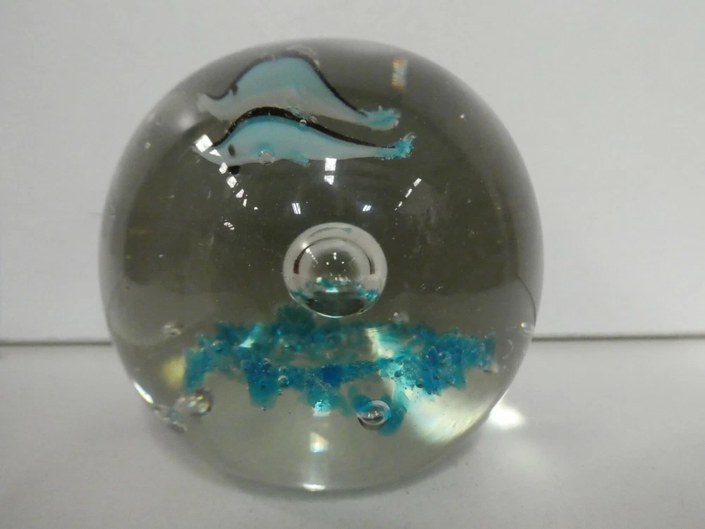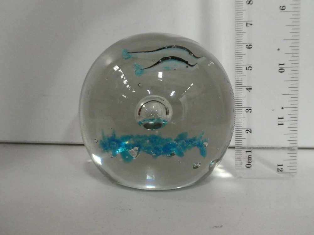 ART GLASS HAND MADE PAPER WEIGHT CONTROL BUBBLE DOLPHINS 6 CM HIGH GOOD CONDITION SEE PHOTOS FOR BEST GUIDE