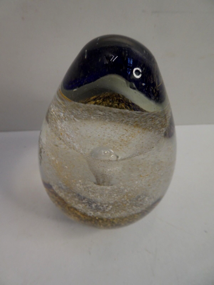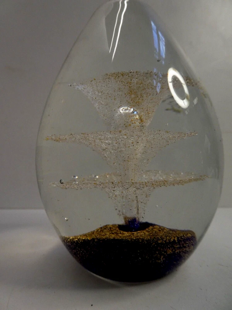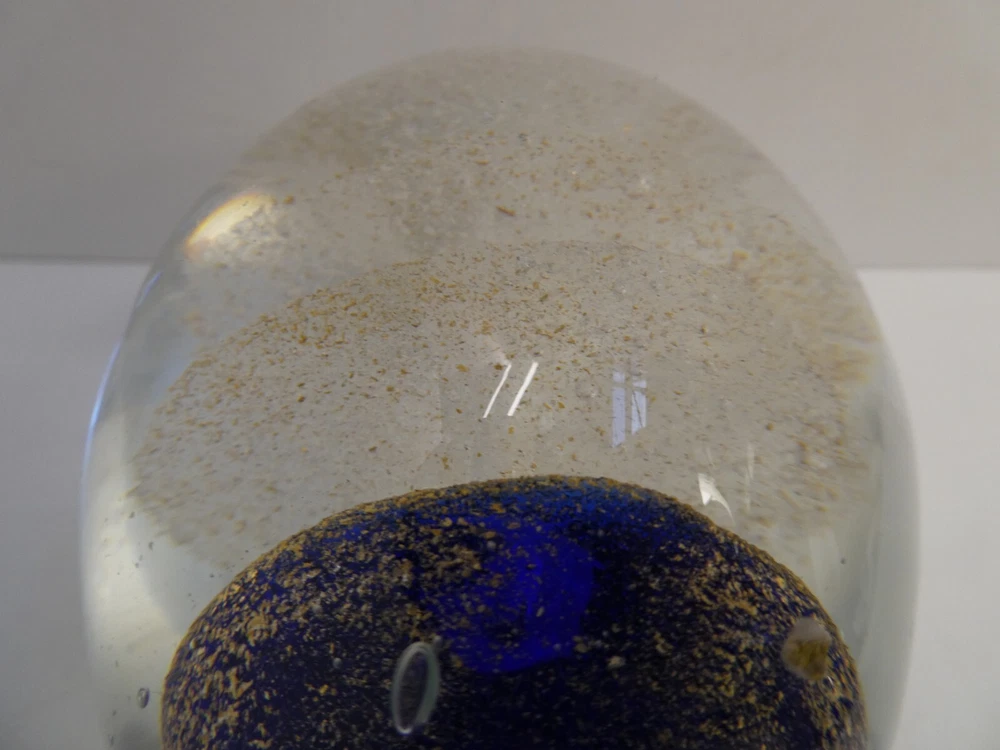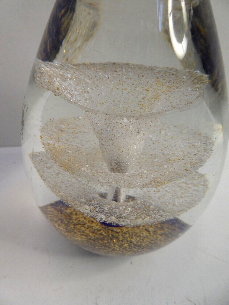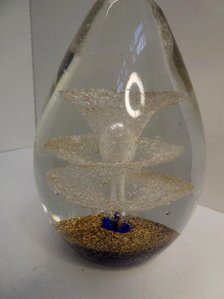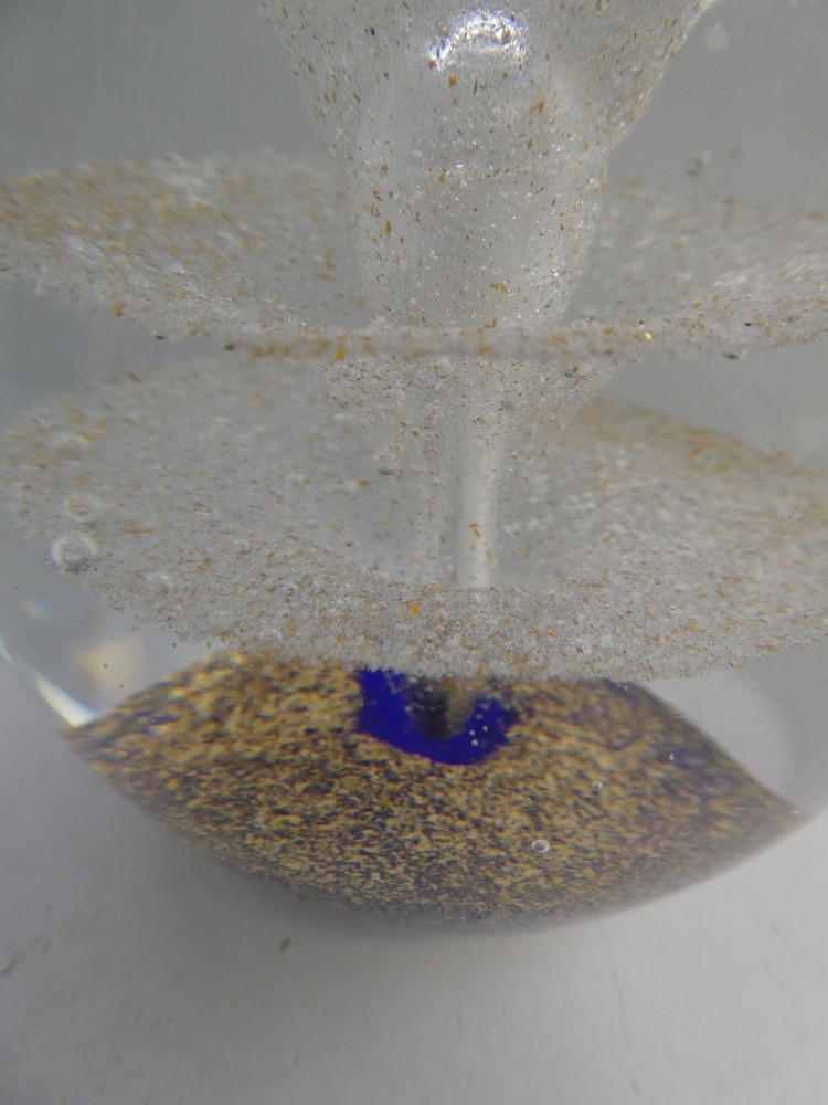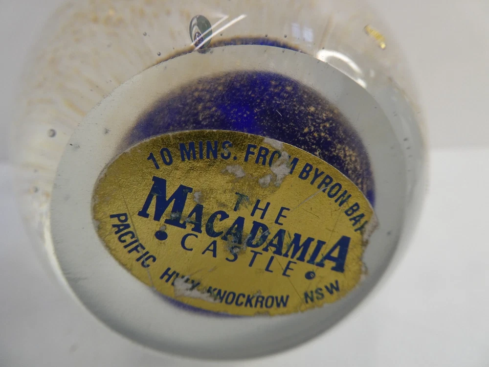 ART GLASS PAPER WEIGHT CASED BLUE GOLD FLAKE SPIRAL -MACADAMIA CASTLE SOUVENIR STICKER LABEL TO BASE - WELL MADE BUT NOT SURE OF ARTIST 13 CM HIGH GOOD CONDITION SEE PHOTOS FOR BEST GUIDE