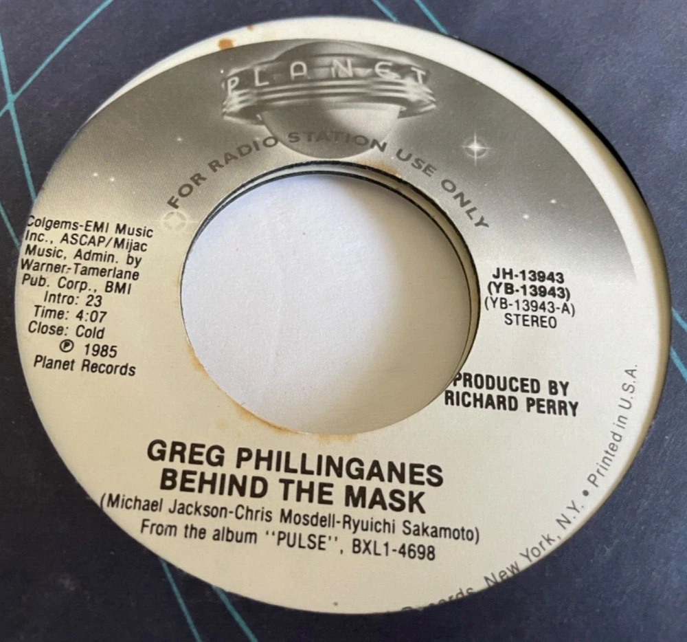 ************ NOTE: Will Combine shipping on items that close the same day ************* Combined shipping USA .00 cents extra postage for each additional, International ships via ebay GLOBAL service, please wait for the invoice on auctions--- or if multi purchases using B.I.N. ADD ITEMS TO SHOPPING CART thanks NOTE: this is not a CD, ---for your consideration AS185 45RPM keyboardist Vocalist Greg Phillinganes Behind The mask same tune B side Planet 13943 promo Year 1985 record EXC some light cosmetic marks, labels ok MY Grading Guarantee---Money back + postage we grade our records visually, but any bad spots are played to check for skips, clicks etc., we also check for bad warps. Thanks For Looking Ship every day, except for Saturdays, Sundays, and postal holidays.