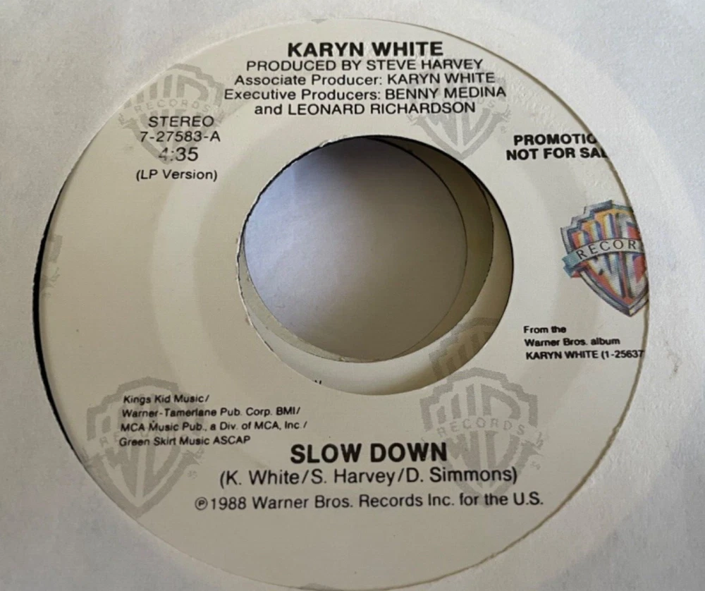 ************ NOTE: Will Combine shipping on items that close the same day ************* Combined shipping USA .00 cents extra postage for each additional, International ships via ebay GLOBAL service, please wait for the invoice on auctions--- or if multi purchases using B.I.N. ADD ITEMS TO SHOPPING CART thanks NOTE: this is not a CD, ---for your consideration AS185 45RPM Karyn White Slow Down same song on B side Warner Bros. 27583 promo year 1988 Record EXC to NM clean, labels ring wear MY Grading Guarantee---Money back + postage we grade our records visually, but any bad spots are played to check for skips, clicks etc., we also check for bad warps. Thanks For Looking Ship every day, except for Saturdays, Sundays, and postal holidays.