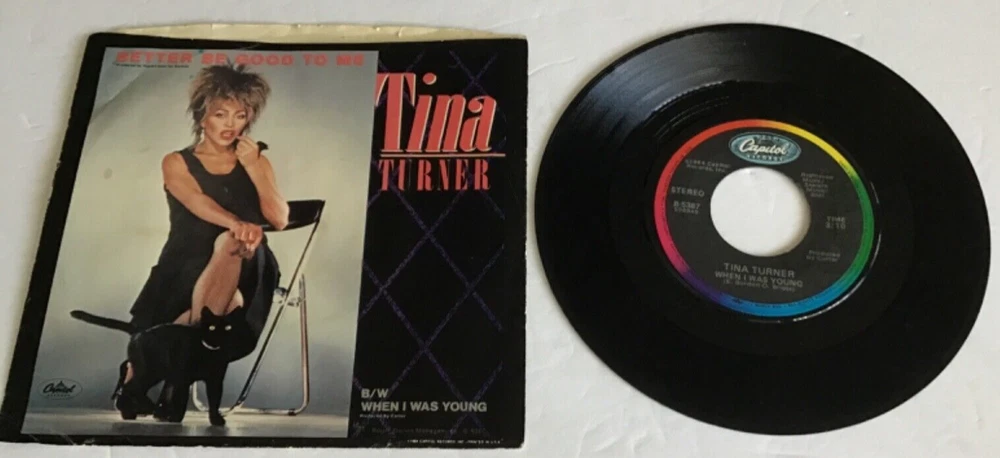 ************ NOTE: Will Combine shipping on items that close the same day ************* Combined shipping USA .00 cents extra postage for each additional, International ships via ebay GLOBAL service, please wait for the invoice on auctions--- or if multi purchases using B.I.N. ADD ITEMS TO SHOPPING CART thanks NOTE: this is not a CD, ---for your consideration AS190 45RPM wPicSlv Tina Turner better be good to me, when I was young Capitol 5387 yr 1984 Sleeve condition Fair has ring wear, upper edge wear corner dings, crinkling, minor stains Split Bottom Middle — Record VG+ to EXC few light cosmetic marks , NAP, labels ok MY Grading Guarantee---Money back + postage we grade our records visually, but any bad spots are played to check for skips, clicks etc., we also check for bad warps. Thanks For Looking Ship every day, except for Saturdays, Sundays, and postal holidays.