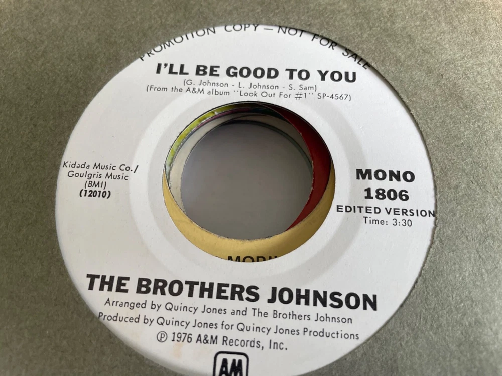 ************ NOTE: Will Combine shipping on items that close the same day ************* Combined shipping USA .00 cents extra postage for each additional, International ships via ebay GLOBAL service, please wait for the invoice on auctions--- or if multi purchases using B.I.N. ADD ITEMS TO SHOPPING CART thanks NOTE: this is not a CD, ---for your consideration AS191 45RPM Brothers Johnson I’ll be good to you edited version same song on B side A&M 1806 promo yr 1976 Record VG+ to EXC light cosmetic marks NAP clean, labels ring wear MY Grading Guarantee---Money back + postage we grade our records visually, but any bad spots are played to check for skips, clicks etc., we also check for bad warps. Thanks For Looking Ship every day, except for Saturdays, Sundays, and postal holidays.