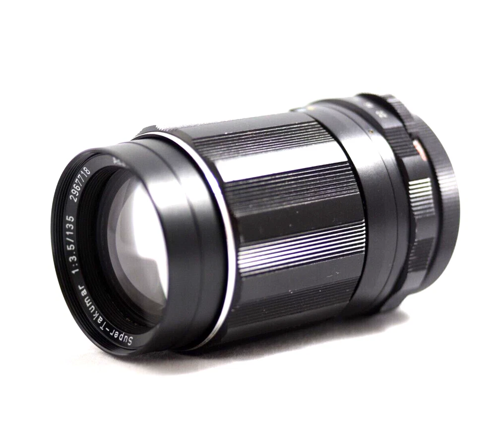 ASAHI PENTAX M42 CAMERA LENS HERE IS A GOOD LOOKING (EXCELLENT) ASAHI PENTAX M42 SCREW MOUNT 135MM F3.5 SUPER TAKUMAR TELEPHOTO PORTRAIT LENS. GLASS LOOKS CLEAN AND CLEAR WITH NO SCRATCHES, HAZE OR FUNGUS. NO OIL ON THE APERTURE BLADES. ALL LENS FUNCTIONS WORK SMOOTHLY. LENS BARREL SHOWS LIGHT PAINT WEAR. LENS COMES WITH PENTAX END CAPS, PENTAX LENS CASE AND SKYLIGHT FILTER.