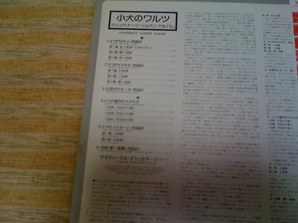 Speed: 33RPM Record Label: King/London.SLA1133 Edition: Japanese Pressing Record Size: 12" Release Year: 1977 Release Title: ASHKENAZY-Chopin Complete Piano Works 2 Artist: Ashkenazy Format: Record Instrument: Piano Seller Notes: “Used LP Record” Style: ----- Features: with OBI Genre: Classical Country/Region of Manufacture: Japan Type: LP