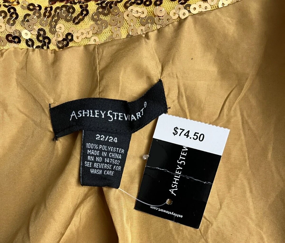 ASHLEY STEWART® Vintage Sequined Duster Gold Long New Sequined Duster With Tag Size 22/24 Sleeve 17"inches Length 48"inches