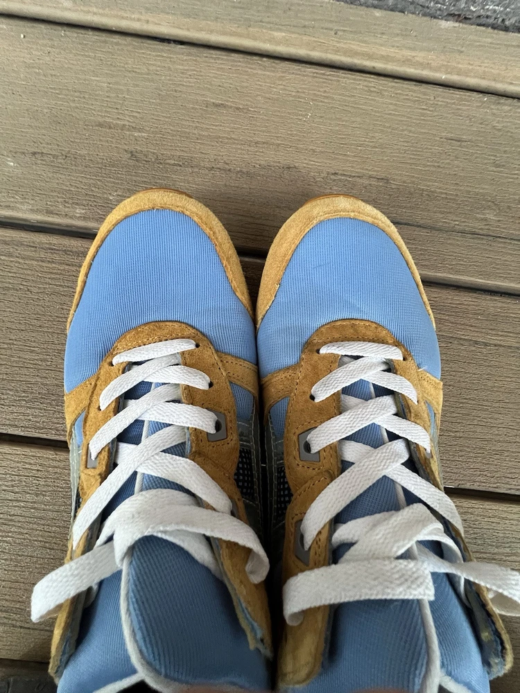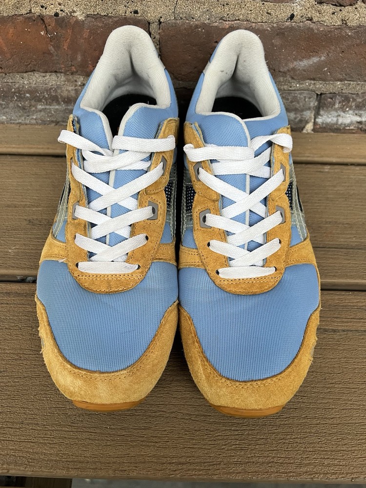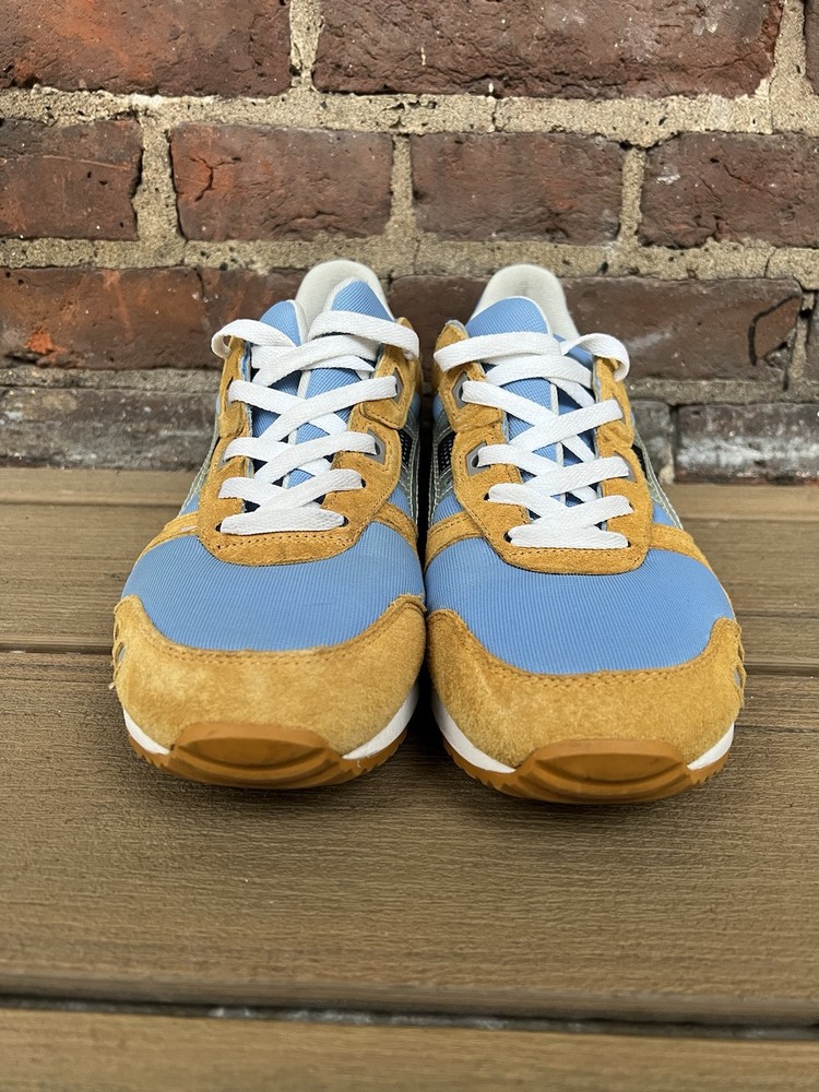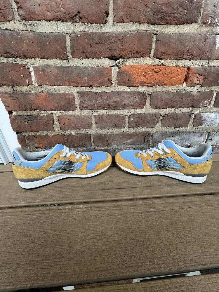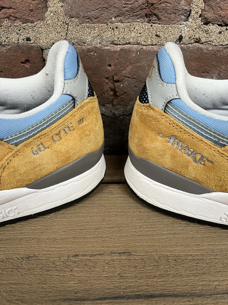 Step into comfort and style with the ASICS Gel Lyte 3 Della Robbia Blue Shoes. Designed in collaboration with Awake NY, these sneakers blend a sleek blue suede upper with the iconic Gel Lyte 3 silhouette, offering a versatile look that's as suitable for a casual day out as for an athletic event. The shoes feature a low-top shaft for a comfortable fit around the ankles, while the standard shoe width ensures a snug and secure feel. The gel insole material provides superior cushioning, and the sneakers are crafted in Vietnam, ensuring the quality and craftsmanship ASICS is known for. Embrace the perfect fusion of fashion and function with these athletic sneakers. Cool split tongue. Great condition