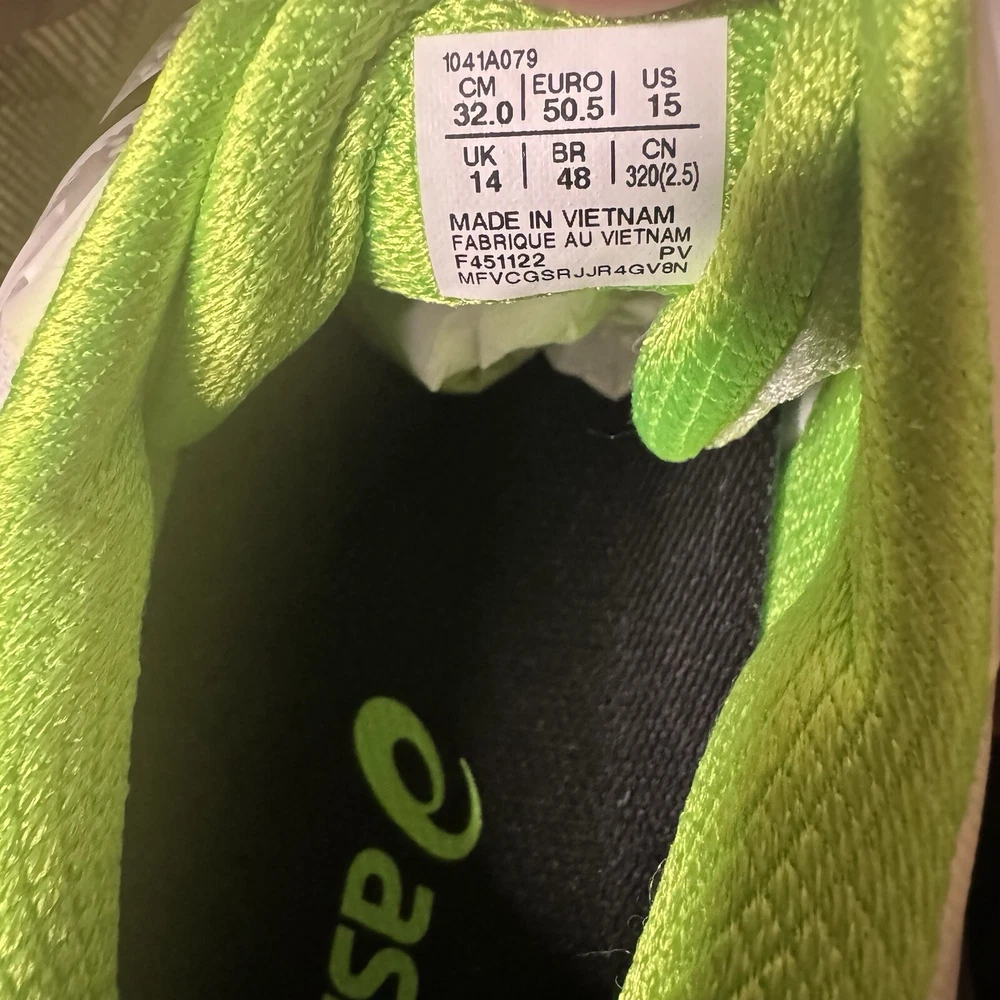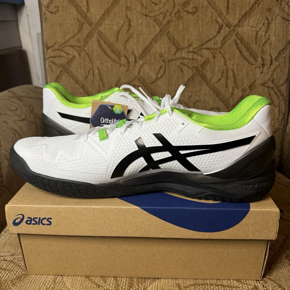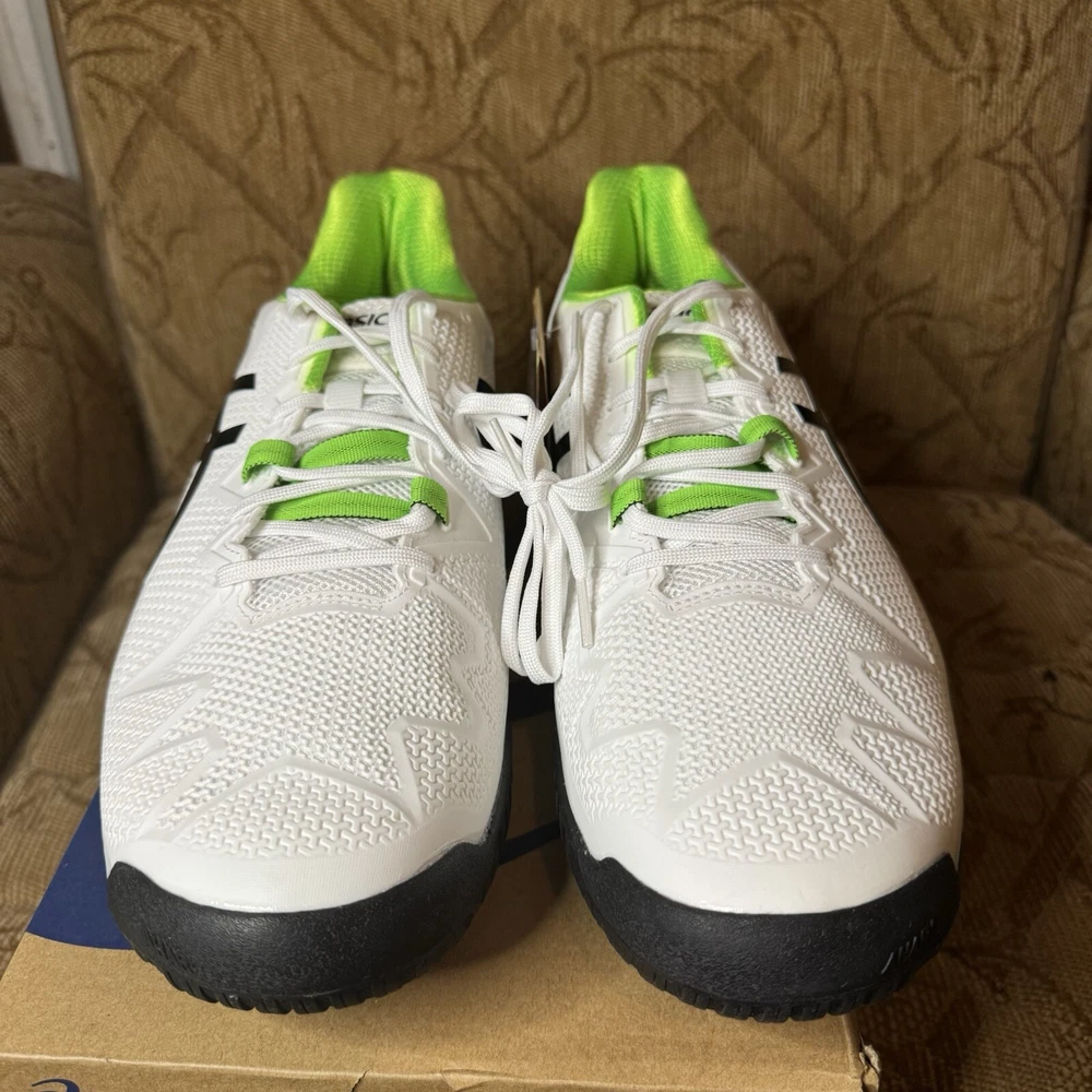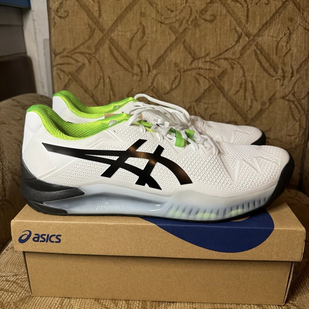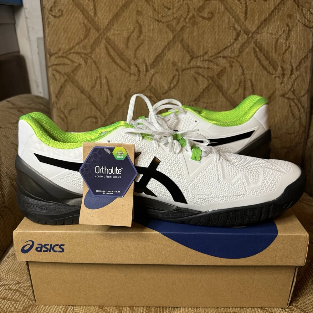 ASICS GEL Resolution 8 Mens US Size 15 White Green Gecko Tennis Pickleball NWT!