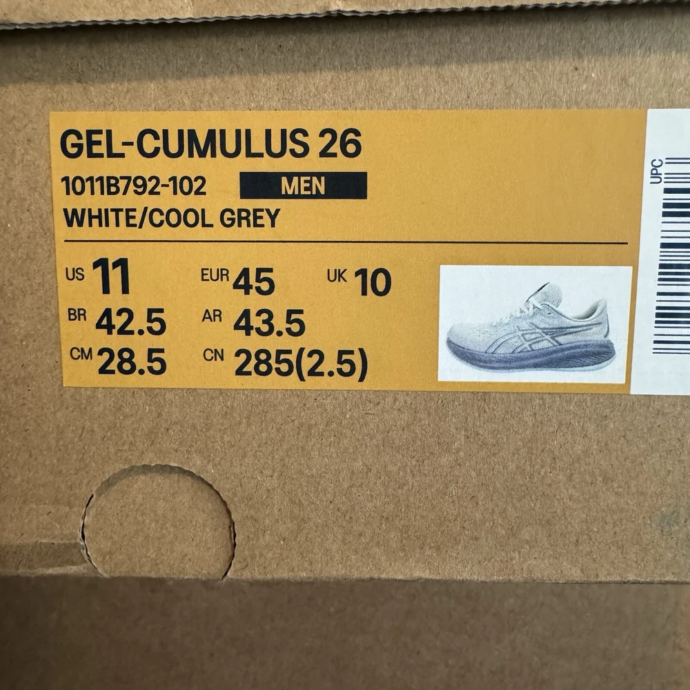 ASICS GEL-CUMULUS 26 Men Size 11 White Cool Grey Running Shoes Worn Once!