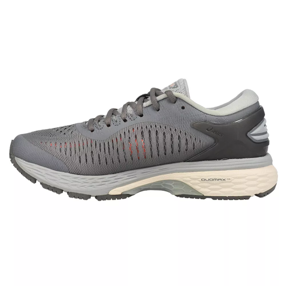Gel-Kayano 25 Running Shoes 1012A026-020 Product Details FlyteFoam FluidFit Technology: The Gel-Kayano 25 Running Shoes incorporate FlyteFoam FluidFit technology, which combines lightweight cushioning with adaptive support for a personalized and comfortable fit. GEL Cushioning System: ASICS' signature GEL technology is strategically placed in the forefoot and rearfoot to absorb shock, providing exceptional cushioning and reducing the risk of injuries. Ortholite X-40 Sockliner: The Gel-Kayano 25 Running Shoes feature an Ortholite X-40 sockliner, known for its moisture-wicking properties, keeping your feet fresh and dry throughout your run. FluidRide Midsole: The FluidRide technology in the midsole of the Gel-Kayano 25 offers a combination of cushioning and bounce-back properties, providing exceptional comfort and energy return. Guidance Line Technology: The Guidance Line technology in the midsole enhances gait efficiency, guiding the foot through a more natural and efficient stride. Designed for a lightweight ride, the GEL-KAYANO 25 running shoe guarantees high level comfort and stability. FLYTEFOAM technology employs organic super fibers that resist compression, providing enduring bounce on even the longest runs. The springy FLUIDRIDE midsole cushions the foot and reinforces its natural line of movement, working together with the signature GEL technology to minimize impact and protect your joints. Seamless materials and construction techniques keep runners free from uncomfortable pressure points or chafing, while carefully dispersed eyelets allow for more even pressure distribution over the lacing, to give a custom-fit feel. The shoe's sleek design features an internal elastic sleeve that fits snugly around your foot like a sock, with a knit upper inspired by the belt of a traditional Japanese kimono. These shoes will give you the energy and stability you need to run further every time. " Additional Details Color: Grey Occasion: Casual Gender: Womens Age: Adult Brand: ASICS