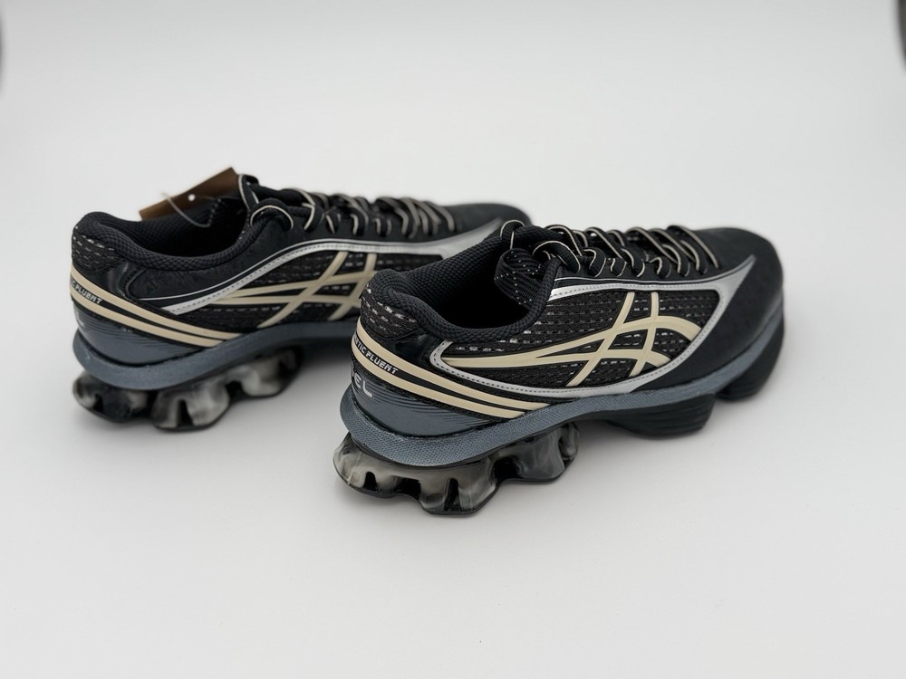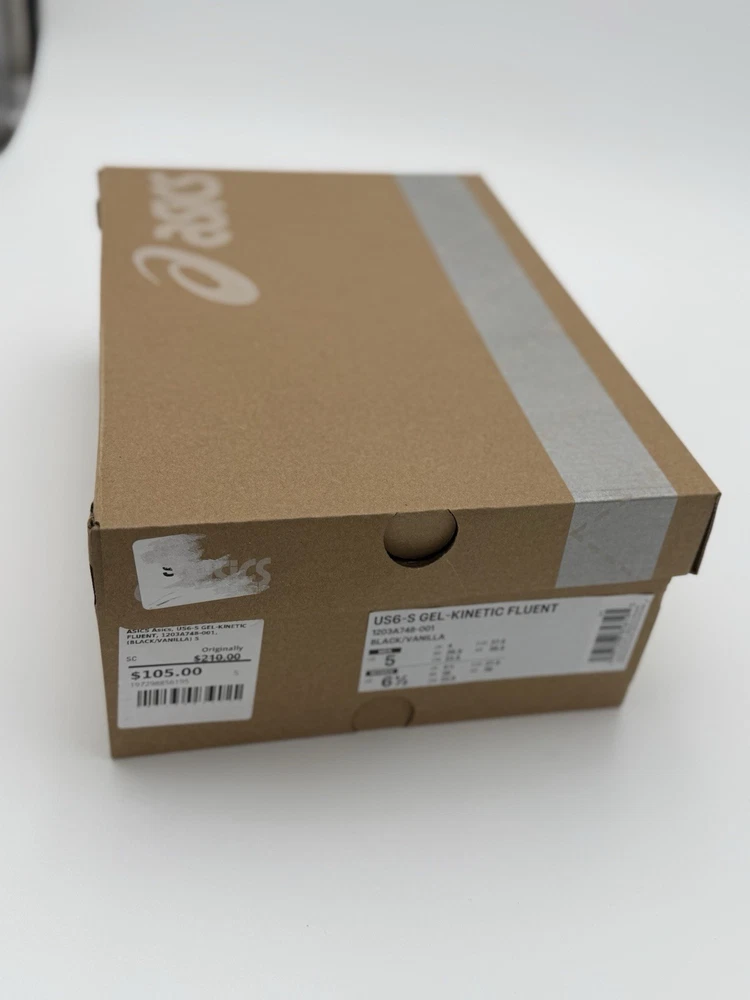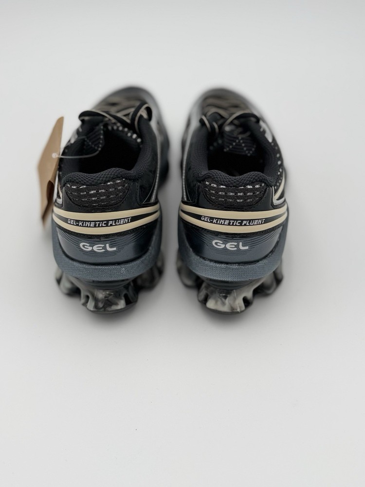 Model: Gel-Kinetic Fluent Shoe Shaft Style: Low Top Style Code: running Upper Material: Mesh, Synthetic Performance/Activity: Running Occasion: Activewear Closure: Lace Up Department: Unisex Adults Brand: ASICS Type: Athletic Color: Black, Silver Outsole Material: Rubber Features: Breathable Season: All Season Product Line: ASICS GEL-Kinetic US Shoe Size: 6.5 Pattern: Solid Silhouette: ASICS Gel-Kinetic Fluent Style: Sneaker