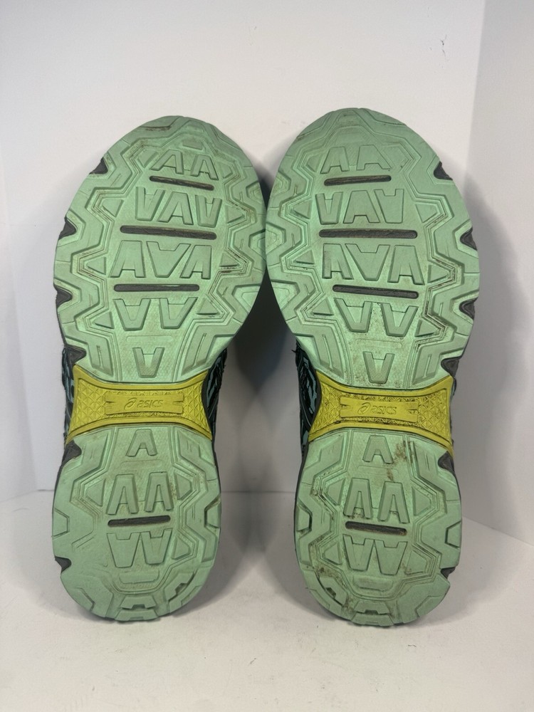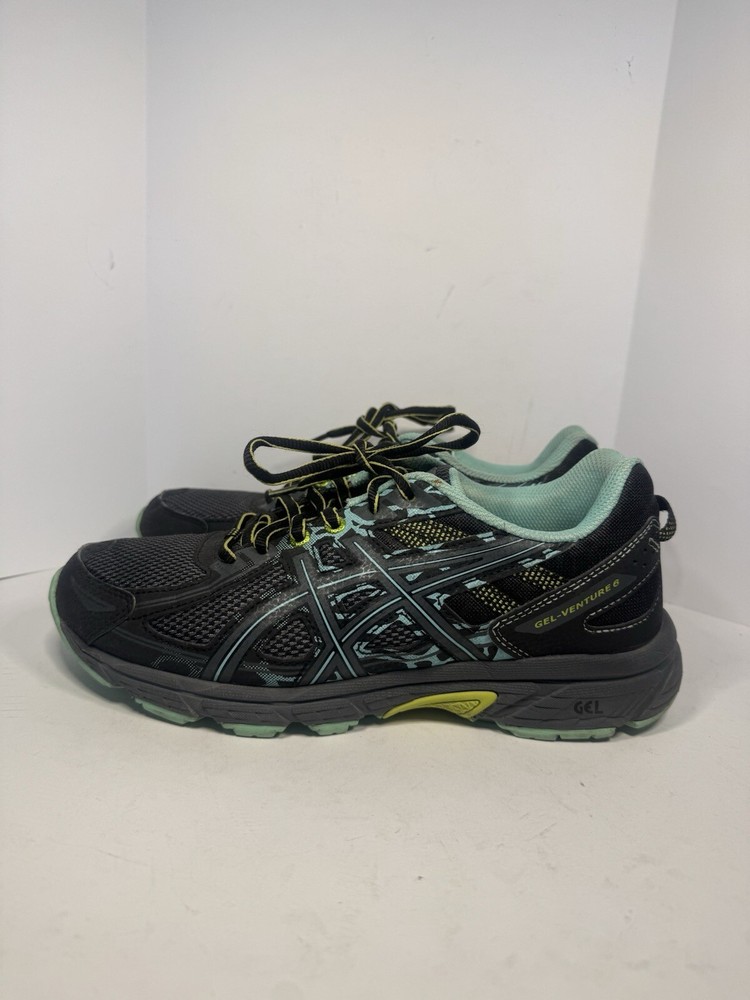 ASICS Gel-Venture Shoes in Black / Carbon / Neon Lime - 9 D Women Size 8.5. Condition is Pre-owned. Shipped with USPS Ground Advantage.