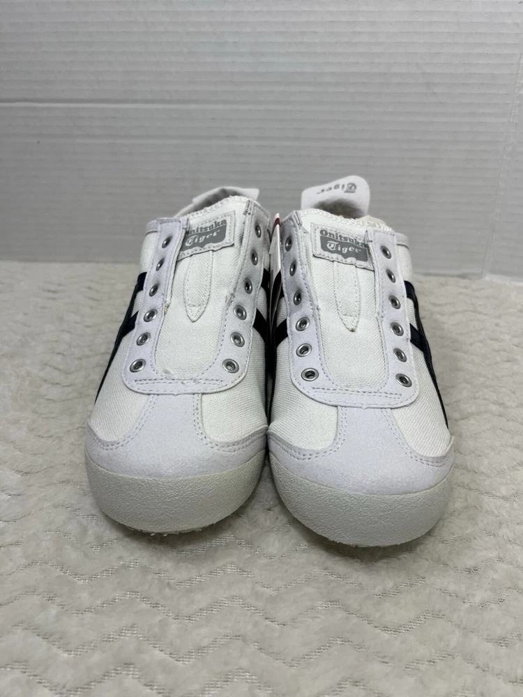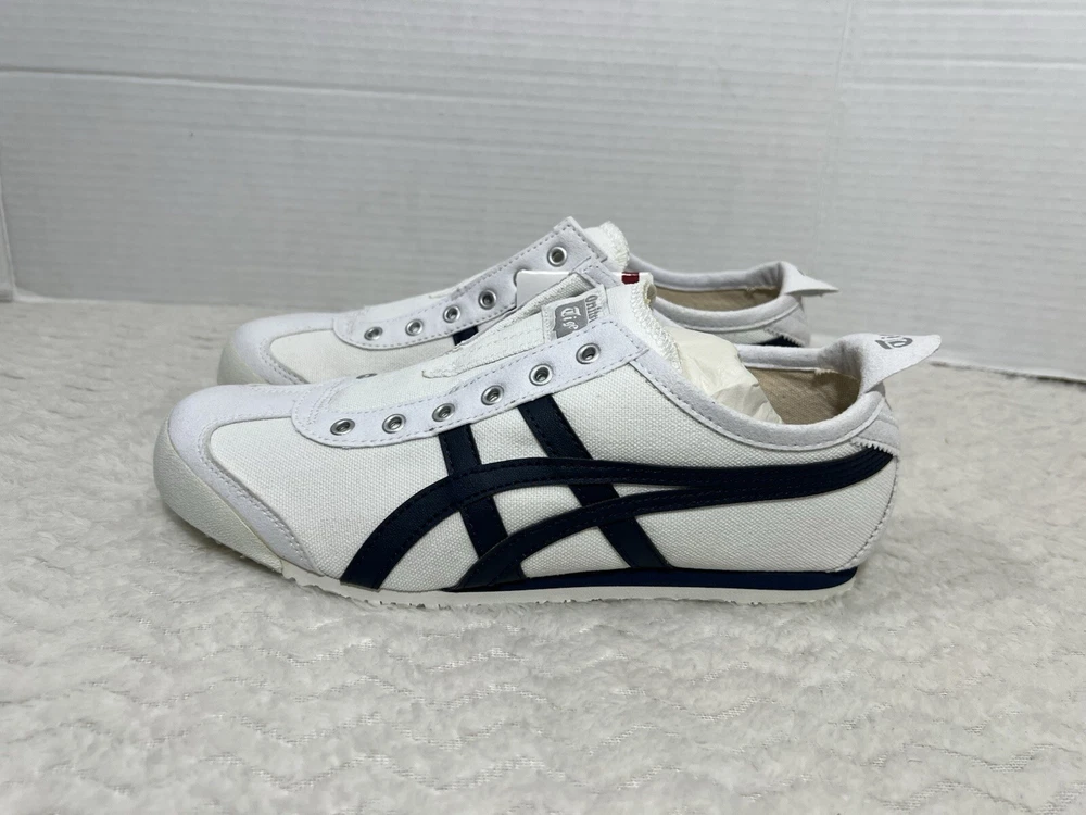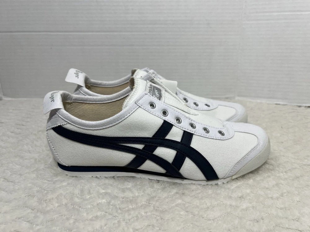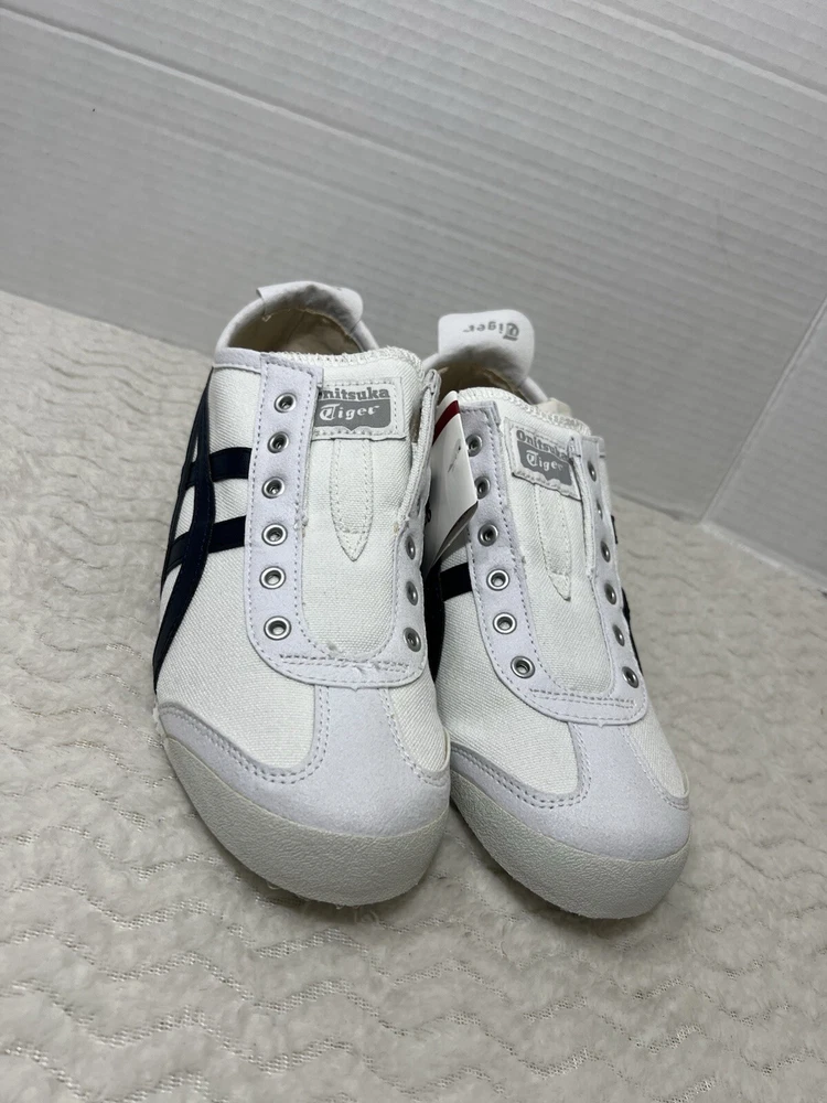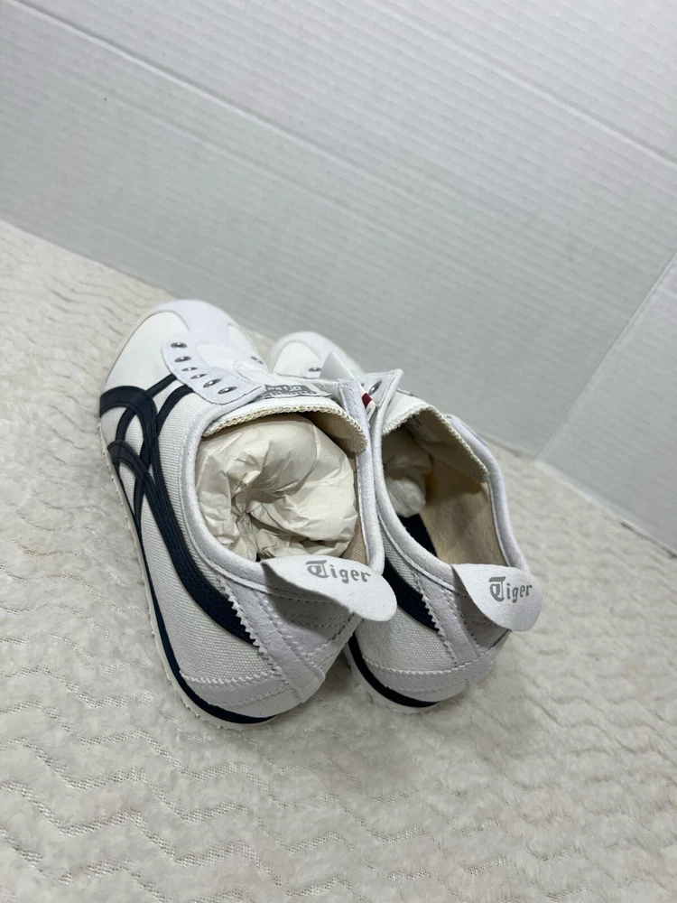 ASICS Onitsuka Mexico 66 Slip-On White/Iron Navy Men's 6, Women's 8.5 Sneakers. Sneakers are in new condition with box. Upper material is very clean, inside is clean as well and the soles are in excellent condition. Nice comfortable lightweight sneakers for casual wear or running. Shipped with USPS priority mail. Sold as pictures. Thank you! Feel free to message me for any questions. Thank you 🙏🏼