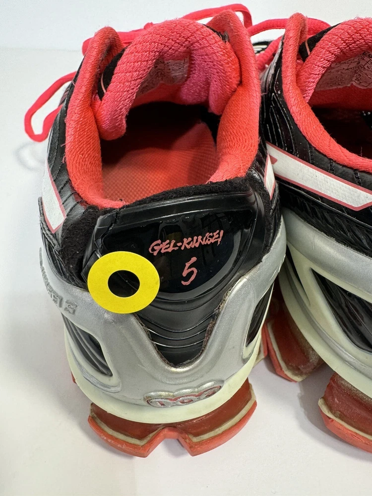Elevate your athletic game with these ASICS women's running shoes. Designed with a mid-top shoe shaft style and lace eyelet accents, these sneakers offer a vintage 90s look with modern features. The synthetic upper material and gel insole provide cushioned comfort and performance support for gym and training activities, cross training, CrossFit, walking, and running and jogging. These ASICS Gel-minded Fluid Fit sneakers come in a white and pink color scheme with a F-360 style code and ASICS Fit product line. The customized shoes are pre-owned and in excellent condition for their release year of 2022. Perfect for women with UK shoe size 8.5, US shoe size 9, and EU shoe size 43, these shoes offer both style and functionality. Hair-line crack top of shaft as shown in photo by yellow sticky.