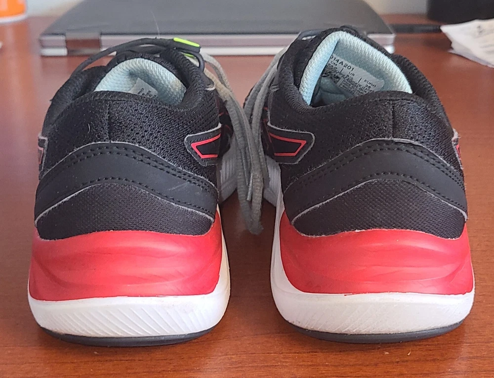 ASICS Women's GEL-Excite 8 Running Shoe is a standard width athletic shoe designed for women. It features a synthetic upper material, lace-up closure, and a colorful design theme of black, red, and white. The shoe is part of the ASICS GEL-Excite product line and has a model number of ASICS GEL-Excite 8. It is available in UK shoe size 5.5, US shoe size 5.5, and EU shoe size 38.