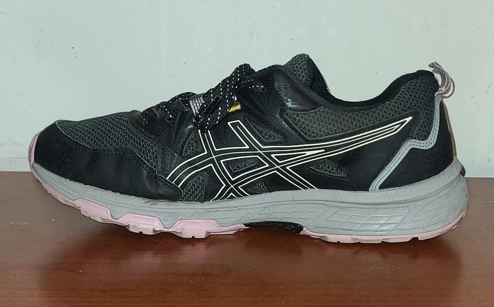 Elevate your active lifestyle with these ASICS Women's Shoes. Designed with a comfortable mesh upper material and a gel insole, these running shoes are perfect for gym & training, walking, school, cross training, CrossFit, and running & jogging. The lace-up closure ensures a secure fit, while the low top shoe shaft style adds a trendy touch to your workout wardrobe. Featuring a stylish black and lavender color combination, these shoes are a perfect fit for women looking for athletic shoes with a touch of style. The ASICS GEL-Venture model is a reliable choice for those who want to stay comfortable and stylish during their workouts. Get yours today and step up your fitness game!