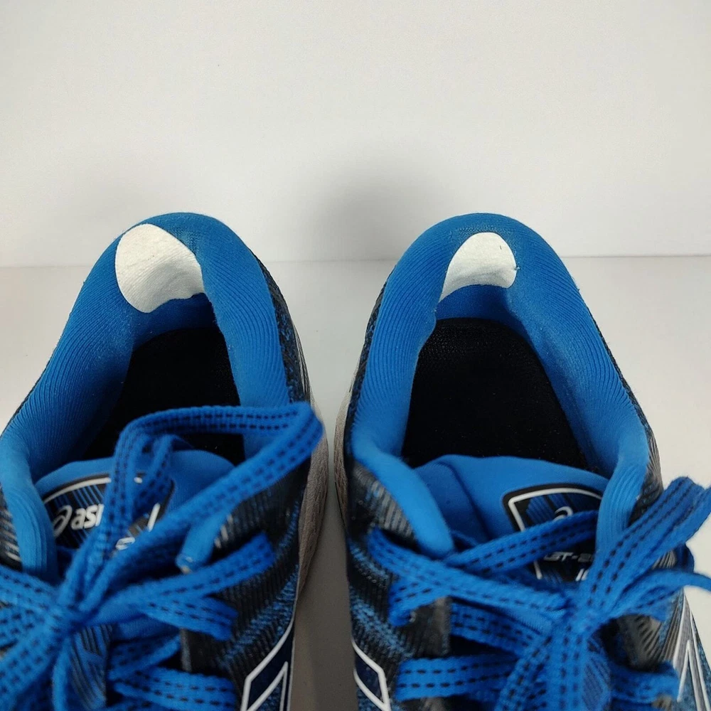 Asics GT-2000 10 - blue Asics running shoes, mens size 8.5. They have some patches on the heel (see pictures) but otherwise they're in great condition, no holes or stains. They've been thoroughly cleaned before listing