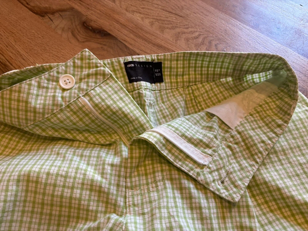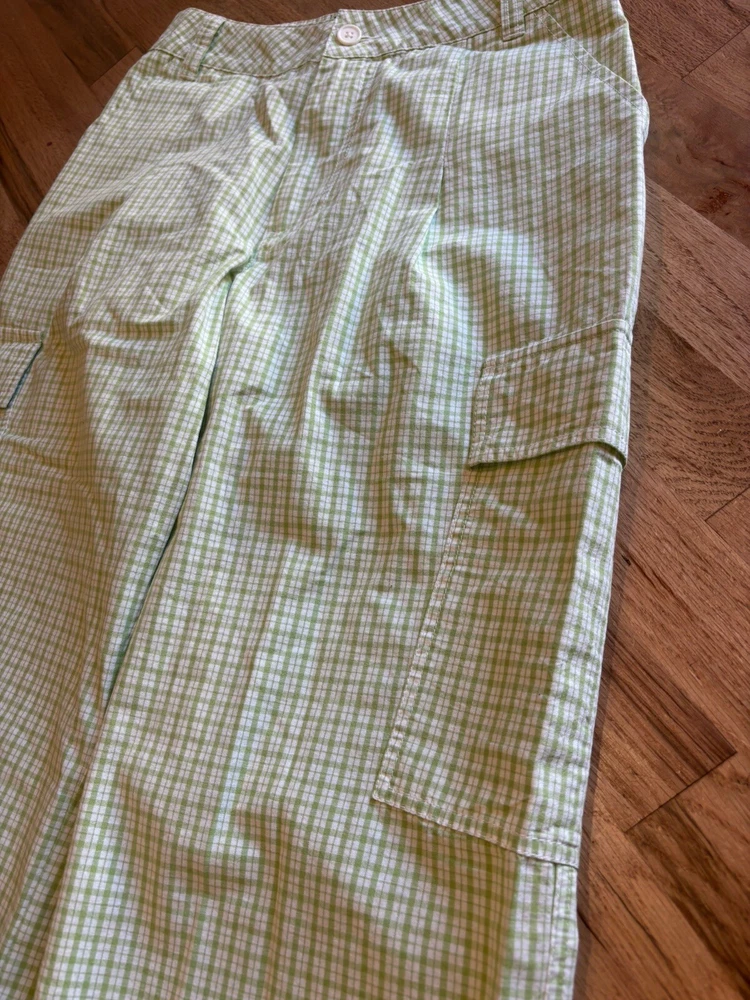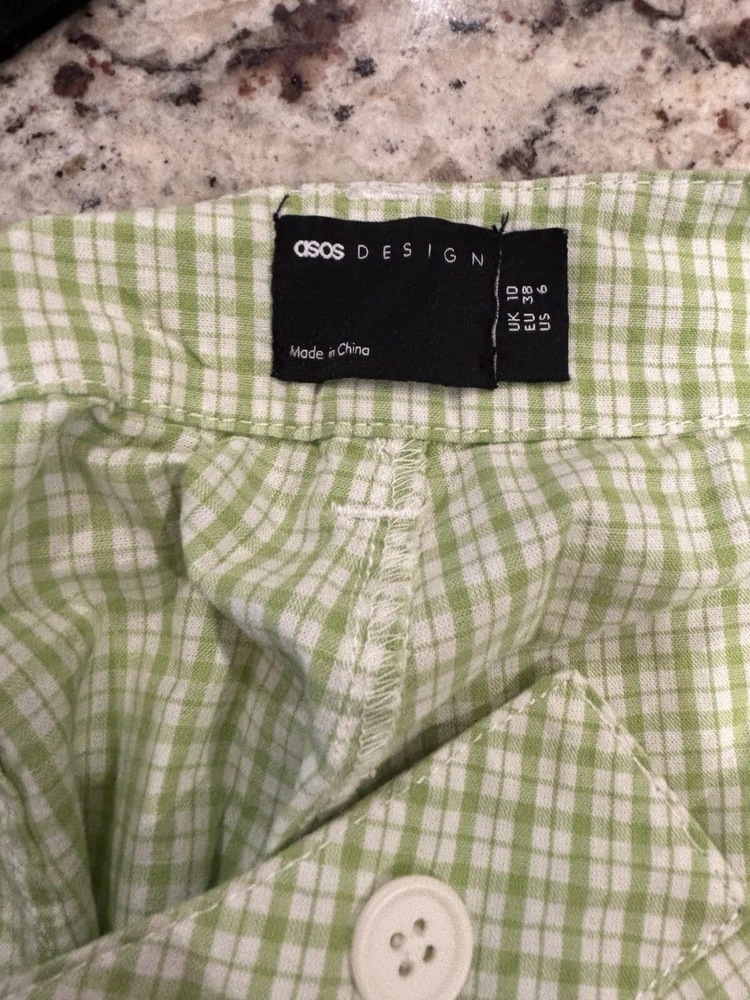 Closure: Button, Zip Features: Easy Care, Pockets Color: Green Theme: Preppy, y2k Type: Pants Style: Cargo Vintage: No Pattern: Plaid Leg Style: Straight Brand: ASOS Department: Women Size Type: Regular Size: 6