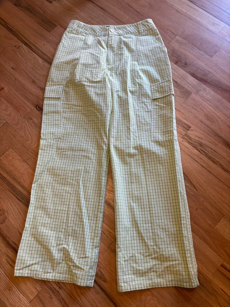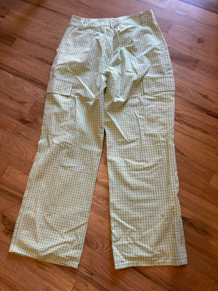 ASOS Oversized Cargo Bright Green Plaid Checkered Pants Size 6 Y2K. Condition is Pre-owned. Shipped with USPS Ground Advantage.