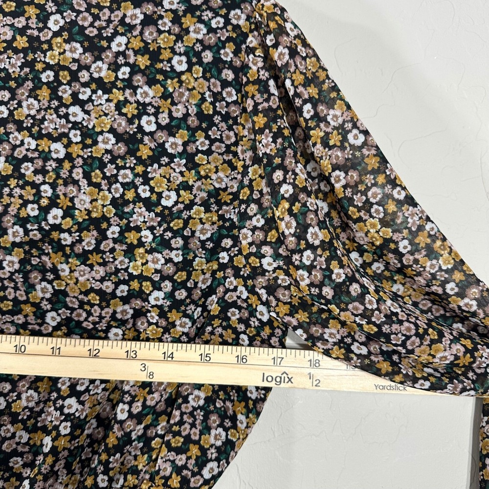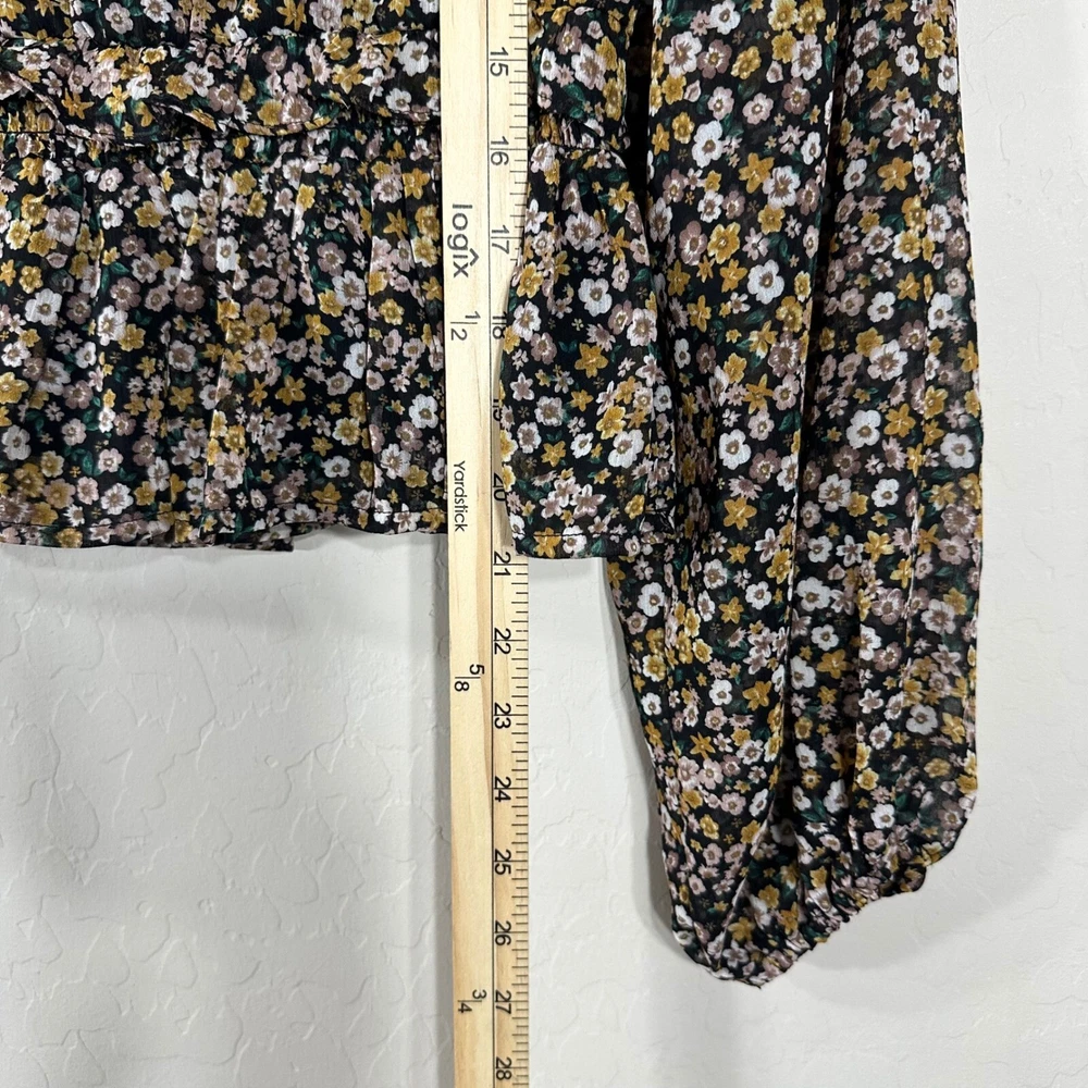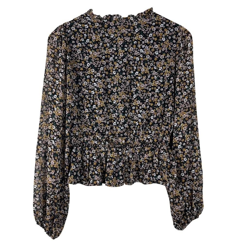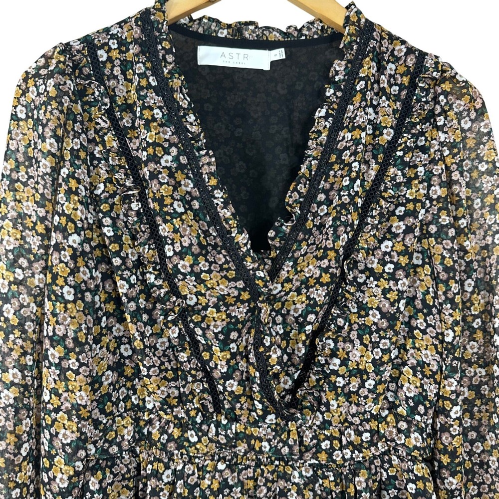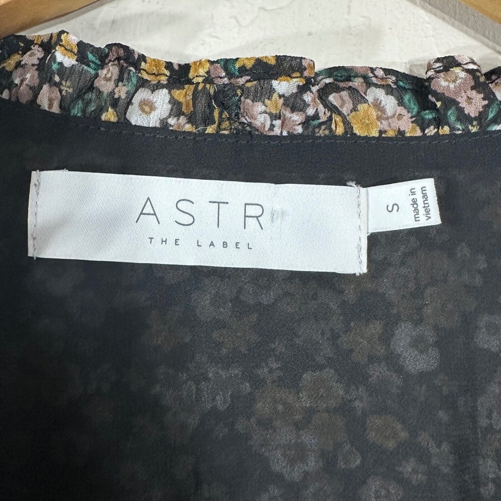 ASTR The Label Women's Top Black Floral V Neck Faux Wrap Long Sleeves Size S Brand: ASTR Materials: 100% Polyester Measurement: Please See Photos (inches) Flaws: No Flaws Washing Instructions: Dry Clean Only Size: Small Review all photos for conditions and details carefully Photos may vary from photography lightings From Pet/Smoke Free home Super Fast Shipping Ship out the next business day!
