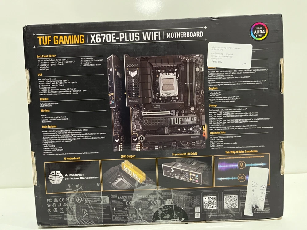 Parts, in original packaging Tested- nonfunctional, Physical damage to motherboard Missing parts