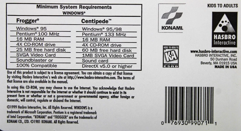 Rating: E-Everyone Genre: Arcade Game Name: Centipede Publisher: Atari Country/Region of Manufacture: United States Platform: PC Video Game Series: CENTIPEDE Features: Manual Included, VINTAGE Region Code: NTSC-U/C (US/Canada) gtin13: 076930990711 UPC: 076930990711 Sub-Genre: PC GAMES Release Year: 1999