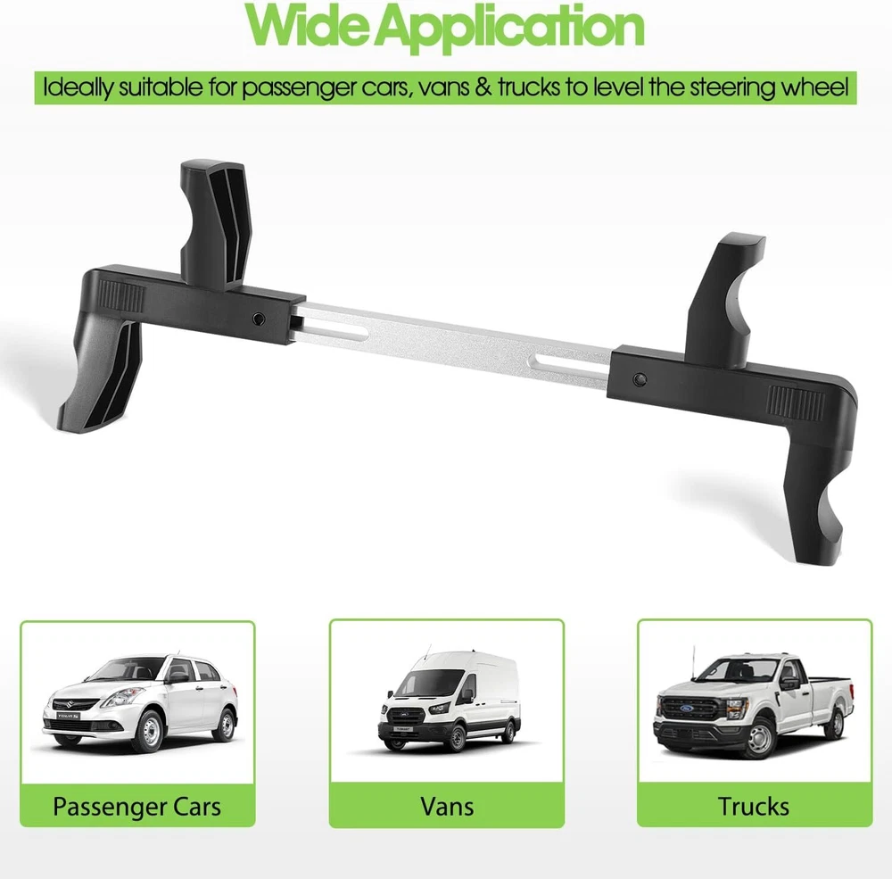 ATD-3100 Steering Wheel Level Alignment Tool 270mm-340mm for Passenger Cars Vans Features: Wide Application - This Steering Wheel Level Alignment Tool fits for steering wheels with an internal diameter of between 10.5" (270mm) to 13.4" (340mm), ideally suitable for passenger cars, vans and trucks. A must-have tool to level the steering wheel accurately and quickly Accurate Alignment - The Steering Wheel Level tool is a sturdy and simple tool, used to level the steering wheel before locking into position, prior to checking/adjusting the front wheel alignment. Ideal for use with 4-Wheel Laser Aligners such as Model No. GA70. Steering Wheel Holder to hold steering wheel in level position Jaga-tools In Search of Excellence! ATD-3100 Steering Wheel Level Alignment Tool 270mm-340mm for Passenger Cars Vans ATD-3100 Steering Wheel Level Alignment Tool 270mm-340mm for Passenger Cars Vans Features: Wide Application - This Steering Wheel Level Alignment Tool fits for steering wheels with an internal diameter of between 10.5" (270mm) to 13.4" (340mm), ideally suitable for passenger cars, vans and trucks. A must-have tool to level the steering wheel accurately and quickly Accurate Alignment - The Steering Wheel Level tool is a sturdy and simple tool, used to level the steering wheel before locking into position, prior to checking/adjusting the front wheel alignment. Ideal for use with 4-Wheel Laser Aligners such as Model No. GA70. Steering Wheel Holder to hold steering wheel in level position Spring Loaded - Featured a level bubble to show horizontal position. Self-retaining and automatic centering by using a spring loaded mechanism. The Steering Wheel Level Alignment Tool is held in place by springs that push the outside edges of the bubble level toward the edge of the steering wheel, adjustable for different diameter wheels Effortless Installation - Clamp onto the steering wheel before undertaking tracking or front-end wheel alignment. For optimal use in the assembly and disassembly of steering wheels, large clamping range. Fast and accurate alignment of the steering wheel during the wheel alignment Built To Last - Crafted from top-quality plastic and steel, for rustproof, high strength, deformation protection. All tools are fully selected & tested to provide stable performance and high reliability Description Package included: Steering Wheel Level Alignment Tool Item Specifics Brand JT-Motor Type Steering Wheel Level Alignment Tool Suit Passenger Cars, Vans & Trucks Material Steel Warranty 1 Year Manufacturer Part Number ATD-3100 Including Steering Wheel Level Alignment Tool Color Black silver Custom Bundle No Number of pieces 1 Payment Returns Jaga-tools In Search of Excellence! DESCRIPTION PAYMENT SHIPPING RETURN POLICY ATD-3100 Steering Wheel Level Alignment Tool 270mm-340mm for Passenger Cars Vans ATD-3100 Steering Wheel Level Alignment Tool 270mm-340mm for Passenger Cars Vans Features: Wide Application - This Steering Wheel Level Alignment Tool fits for steering wheels with an internal diameter of between 10.5" (270mm) to 13.4" (340mm), ideally suitable for passenger cars, vans and trucks. A must-have tool to level the steering wheel accurately and quickly Accurate Alignment - The Steering Wheel Level tool is a sturdy and simple tool, used to level the steering wheel before locking into position, prior to checking/adjusting the front wheel alignment. Ideal for use with 4-Wheel Laser Aligners such as Model No. GA70. Steering Wheel Holder to hold steering wheel in level position Spring Loaded - Featured a level bubble to show horizontal position. Self-retaining and automatic centering by using a spring loaded mechanism. The Steering Wheel Level Alignment Tool is held in place by springs that push the outside edges of the bubble level toward the edge of the steering wheel, adjustable for different diameter wheels Effortless Installation - Clamp onto the steering wheel before undertaking tracking or front-end wheel alignment. For optimal use in the assembly and disassembly of steering wheels, large clamping range. Fast and accurate alignment of the steering wheel during the wheel alignment Built To Last - Crafted from top-quality plastic and steel, for rustproof, high strength, deformation protection. All tools are fully selected & tested to provide stable performance and high reliability Description Package included: Steering Wheel Level Alignment Tool Payment Returns All rights reserved.