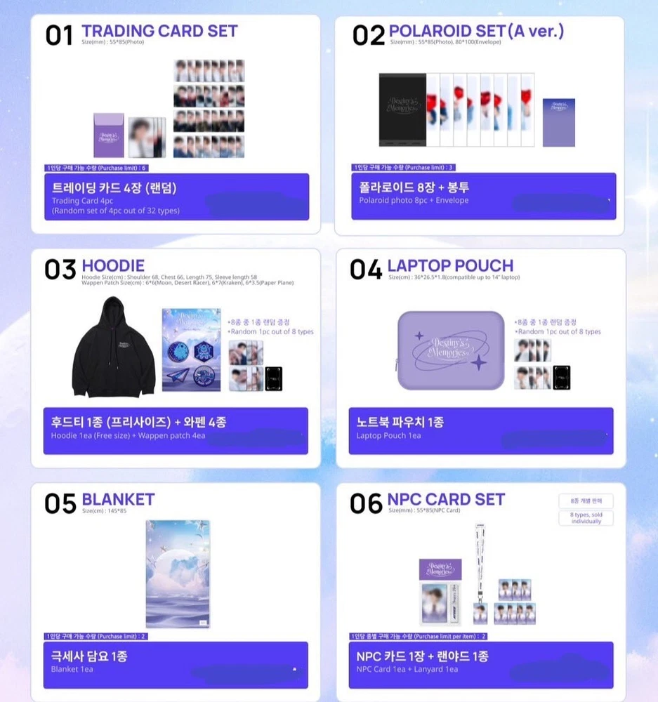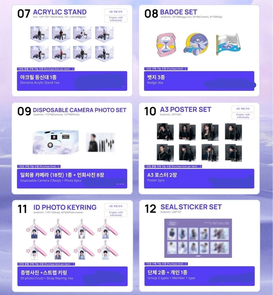 【ATEEZ】EXHIBITION STORE Destiny's Memories Official Goods 1st & 2nd Lineup 100% product is official and brand new sourced from Korea. All products are genuine products purchased locally. Product sizes conform to the official announcement. [About Shipping] 〇 All products listed will be shipped together on 1/20~23. 〇 Each product will be properly protected from cracking, folding, and getting wet. Please rest assured. 〇After shipping, it takes about one month to arrive. In the unlikely event that your luggage does not arrive or is damaged, we will refund your money. 〇Shipping, please send us a message if you have any questions or requests. We will do our best to help you with your shopping. Thank you very much‼