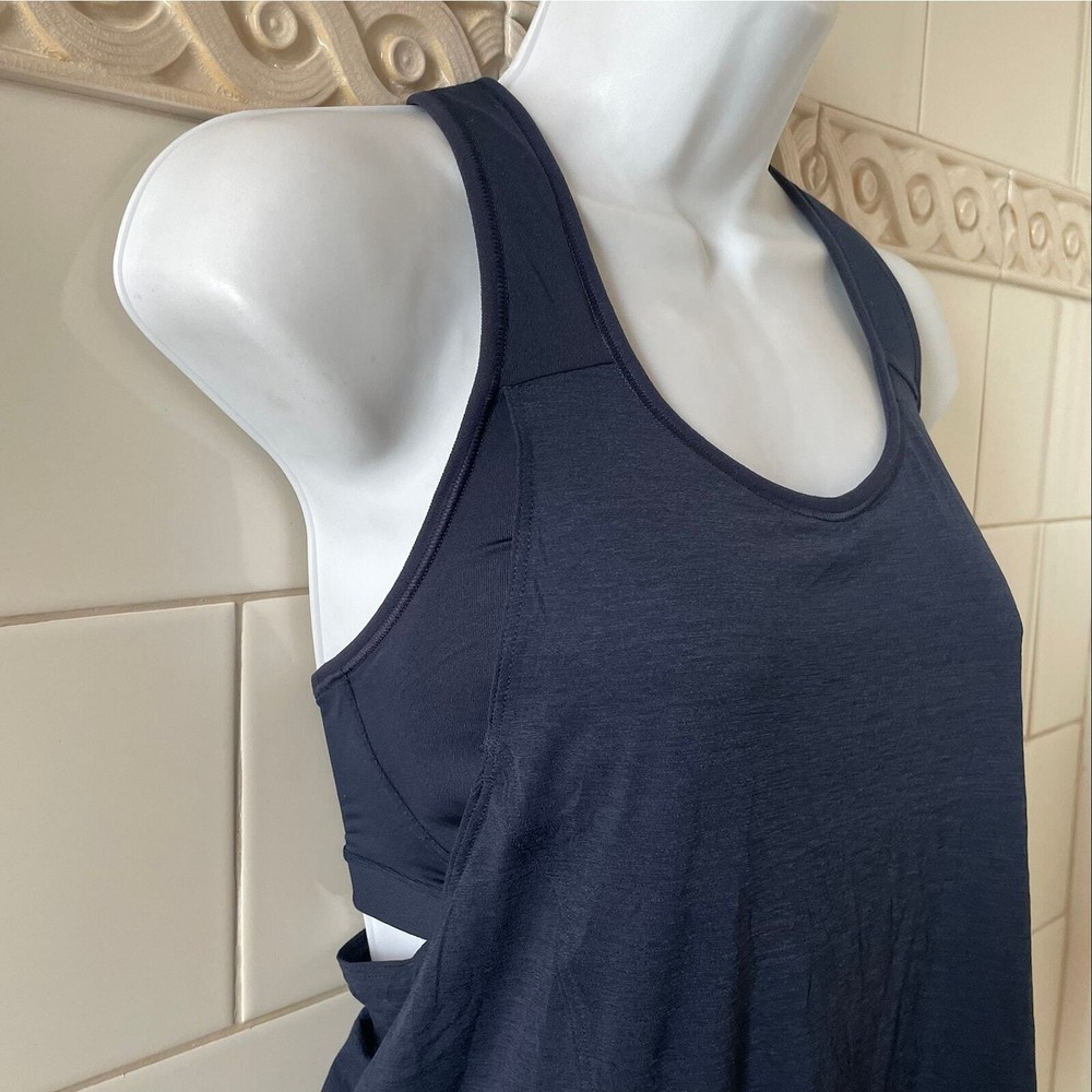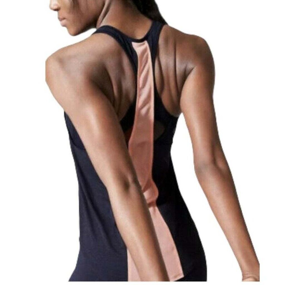 ATHLETA Women’s “Hullabraloo Support Top” Bra Tank Navy sports bra with attached navy tank Support top with coral pink mesh ventilation to keep you cool and supported through your workout Approx. length 23" Pre-owned in very good condition.