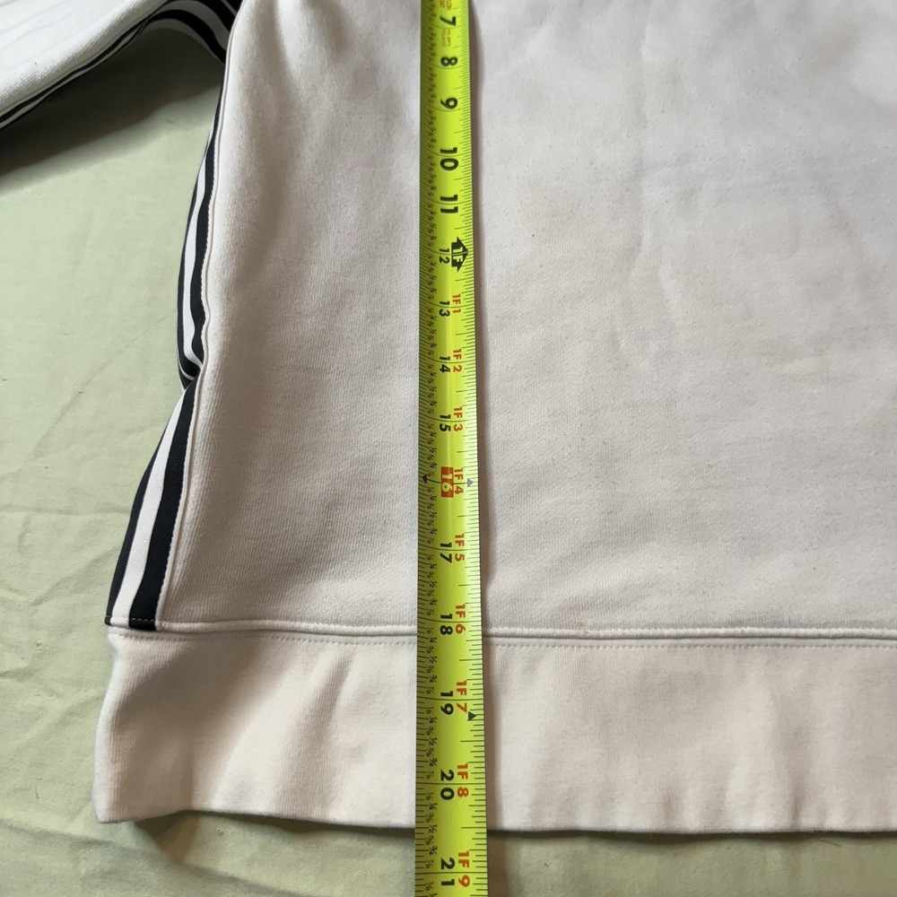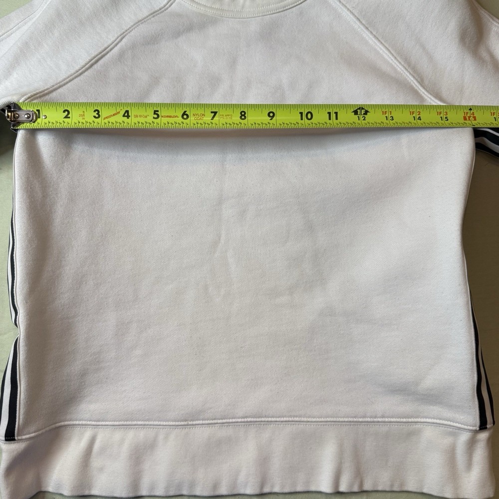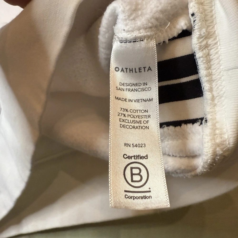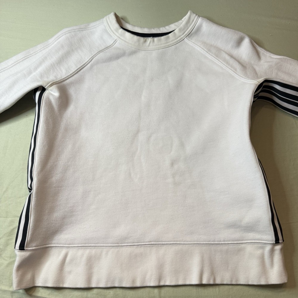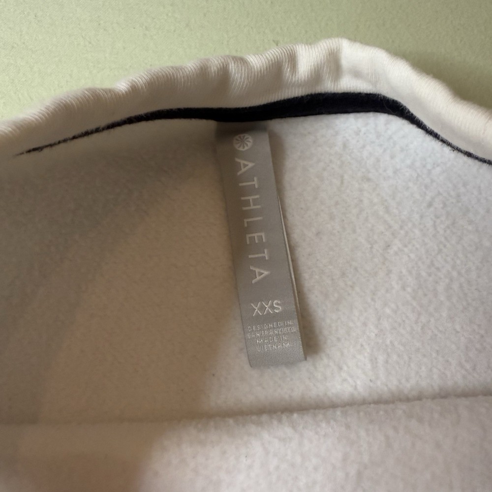 The ATHLETA Women's Size XXS Crew Neck White Black Stripe Long-Sleeve Sweatshirt is a stylish and versatile activewear piece perfect for various activities like gym training, walking, yoga, and running. Made from a blend of polyester, spandex, and modal, this sweatshirt offers a relaxed fit and is breathable, making it suitable for all seasons. The classic white color with black stripes adds a touch of style, while the crew neck and pullover closure ensure ease of wear. With the quality brand of Athleta, this sweatshirt combines comfort and performance for the modern woman on the go.